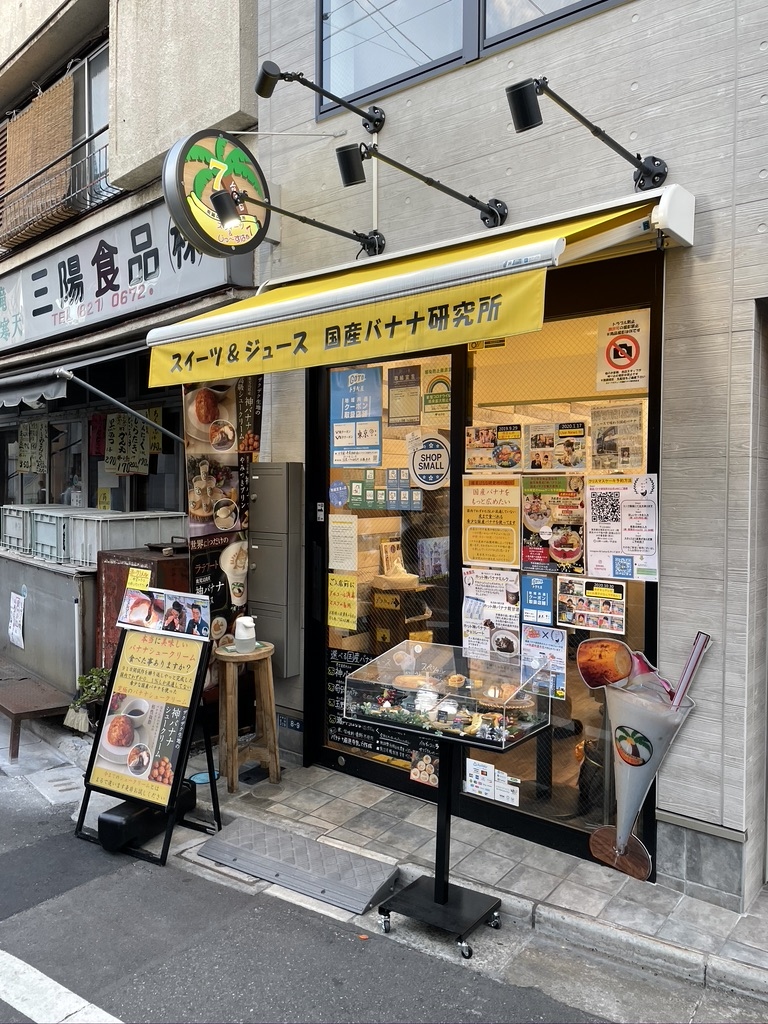日暮里駅から夕やけだんだんを下って、谷中銀座を抜けた左側にある国産バナナ研究所。バナナを使った様々なスイーツが楽しめるお店なのですが、中でもおすすめはバナナシュークリーム。テレビ番組でも取り上げられたらしく、人気のようでした。テイクアウト専門なので、歩きながら楽しむのがベスト!