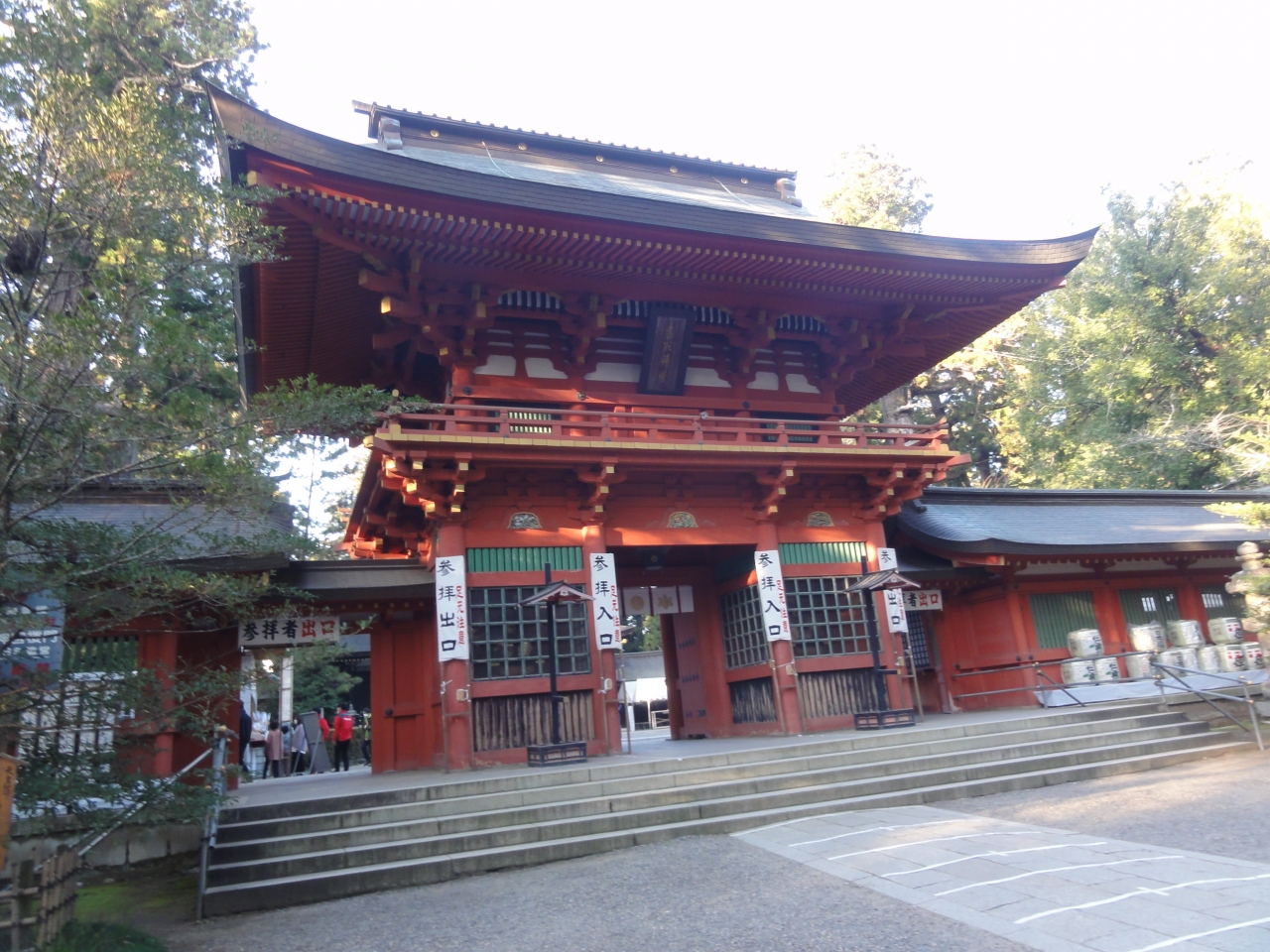 ひと足早い初詣と年末に蜜を避け、鹿島神宮、息栖神社、香取神宮と東国三社を巡りました。今回は表参道から参拝したので朱色の楼門から入りました。元禄13年(1700)、本殿と共に徳川五代将軍綱吉により建造されたもので、存在感ある重厚な門です。