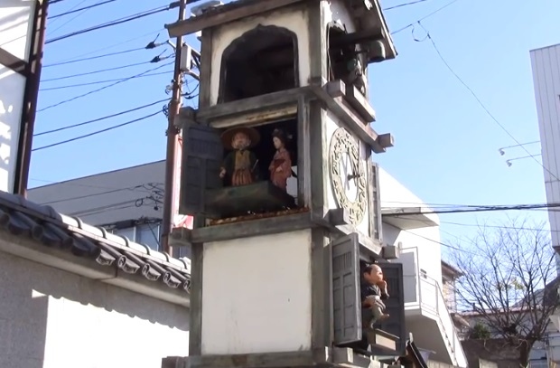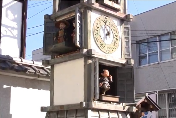 このような精巧なからくり人形が、野外の時計塔に設置されているのは、他に見られないものと思います。