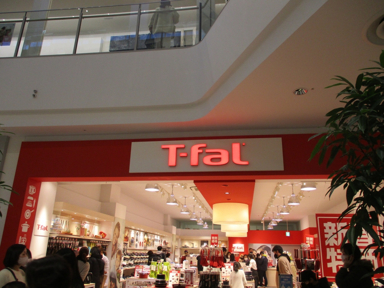 ららぽーとの1階にお店があります。お鍋などで有名なティファールの商品がずらりと並んでいます。鍋以外にもポットやフライパン、福袋もありました。取っ手がとれたり重ねてしまえたり、便利な調理器具ですね。品定めしているお客さんがたくさんいました。