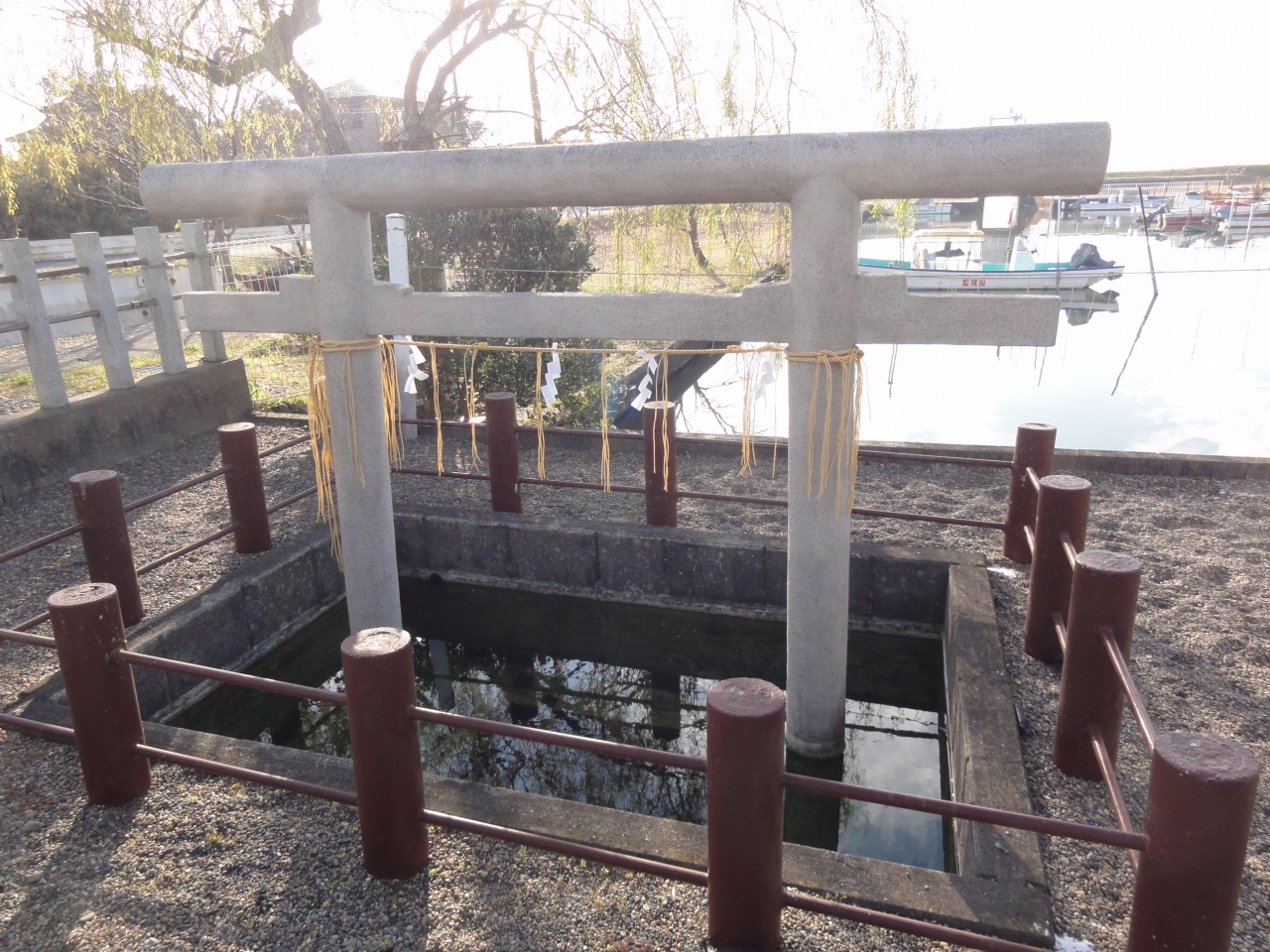 利根川近くの大鳥居の両側にも小さな鳥居があり足元に水があります。「忍潮井(おしおい)」という井戸で、水底に瓶(かめ)があり「男瓶(おがめ)」と「女瓶(めがめ)」と呼ばれ清水を湧き出し続け日本霊水の一つに数えら、縁結びの言い伝えもあるそうです。