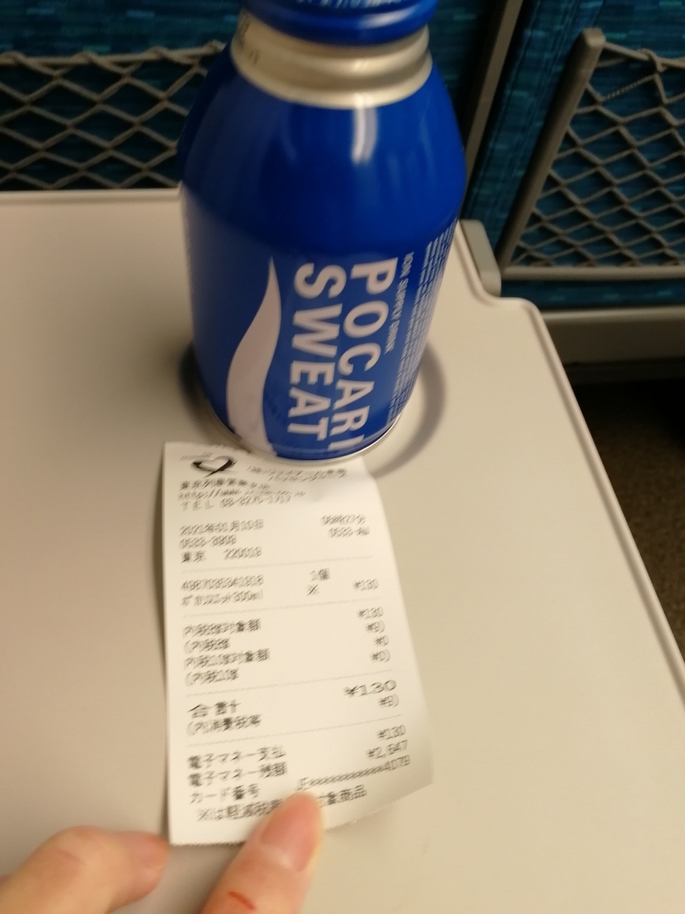 朝のモーニングセット搭載の列車でしたが、短い時間で慌てるのもなんかアレだったので、ポカリスエットだけ購入しました。