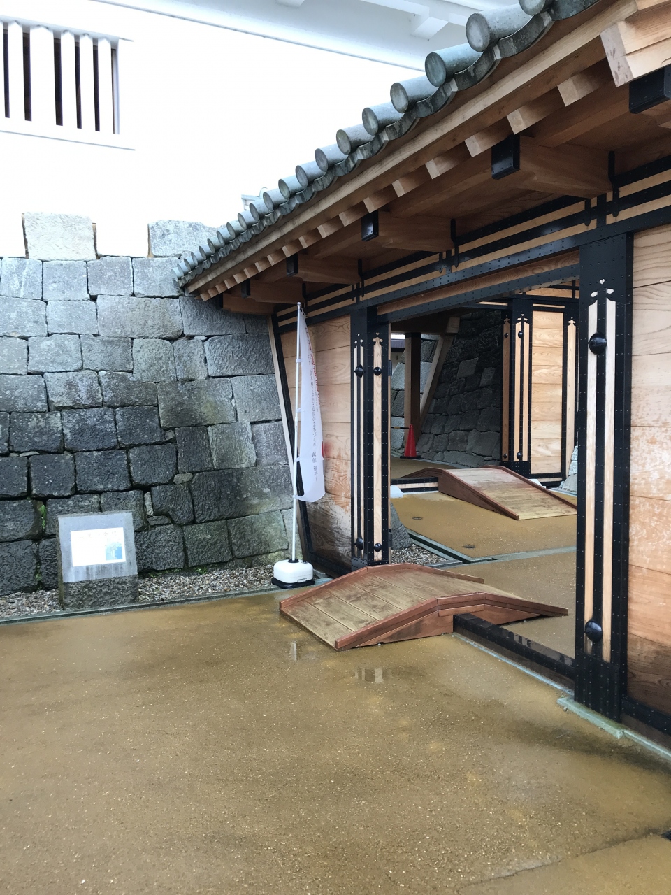 御廊下橋を再建した新しい施設でした。橋を渡ってお城に入るまでいくつもの門をくぐるようになっており、当時のお城の防御に対する手間を見ることができました。すべて木造で大きな柱や梁がむき出しになっており、小僧も見て楽しむことができました。