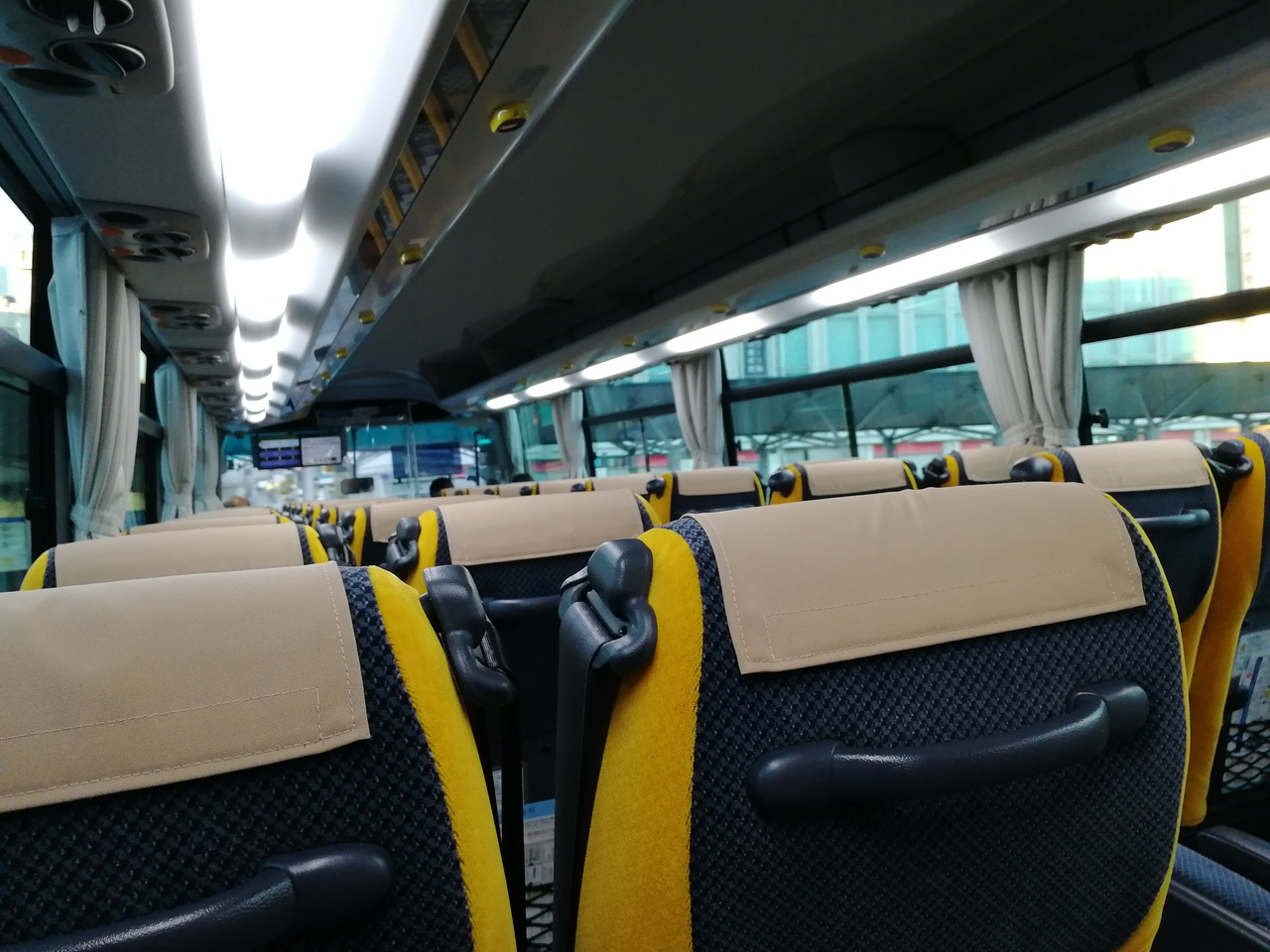 バスの車内は12列シートでトイレ無しで少し狭めに感じますが、少しだけリクライニングできます。