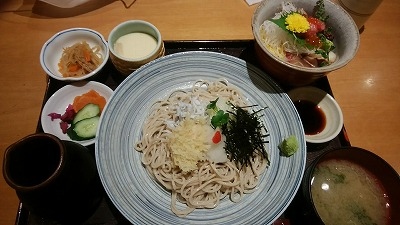 小田原駅の東口、3階の改札から、東出口に出るエスカレータを乗り継ぐフロアに店を構えています。いつも込み合っていますが、久しぶりに入って見ました。小田原漁港の魚と日本酒の店です。この日は遅いランチの時間帯で空いていましたが、カウンター十数席にテーブル10卓ほどとかなり大きな店です。そばとミニ海鮮丼をいただきました。