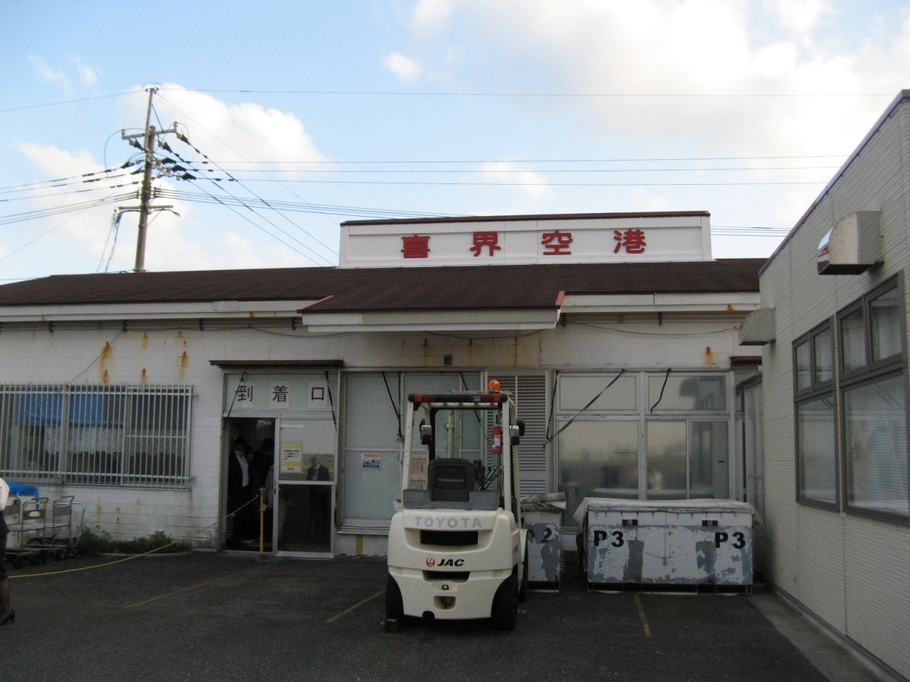 奄美大島からJACのプロペラ機でわずか10分ほどで到着、飛行機を降りたら歩いてターミナルへ、ターミナルと言っても田舎の駅構内という感じで、今まで色んな空港を利用してきたが最も小さい空港ターミナルでした。それでも、小さな売店が一つあって、お土産の販売や喫茶コーナーを兼ねている他、自転車と原付バイクのレンタルも行っている。
