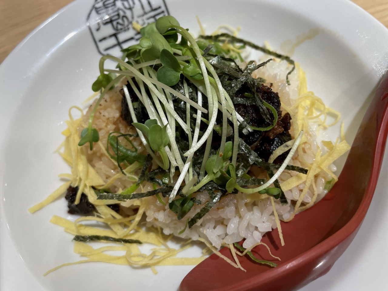 晩飯時に腹が減ったので何気なく入ったお店です。汁なしの油そばみたいなものとチャーシュー丼のようなもののセットを頼みました。油はそれほど重くなく量も適量でした。チャーシュー丼のようなものはイメージしていたものとは違って肉らしいものはよくわからずじまい。なんか黒く焦げたようなものがご飯の上にかかっていました。よくよくメニューの説明を見なかったので結局正体はわからずじまい。なのでコスパ的にはどこか勿体ない気分になりました。