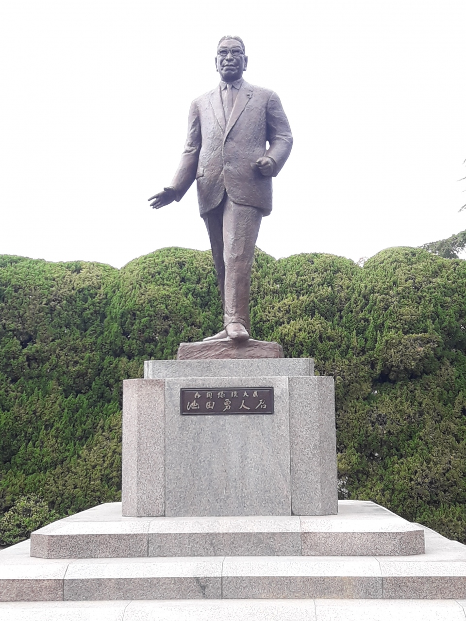 広島県竹原市出身、「所得倍増政策」で有名な第58-60代内閣総理大臣・池田勇人の像です。