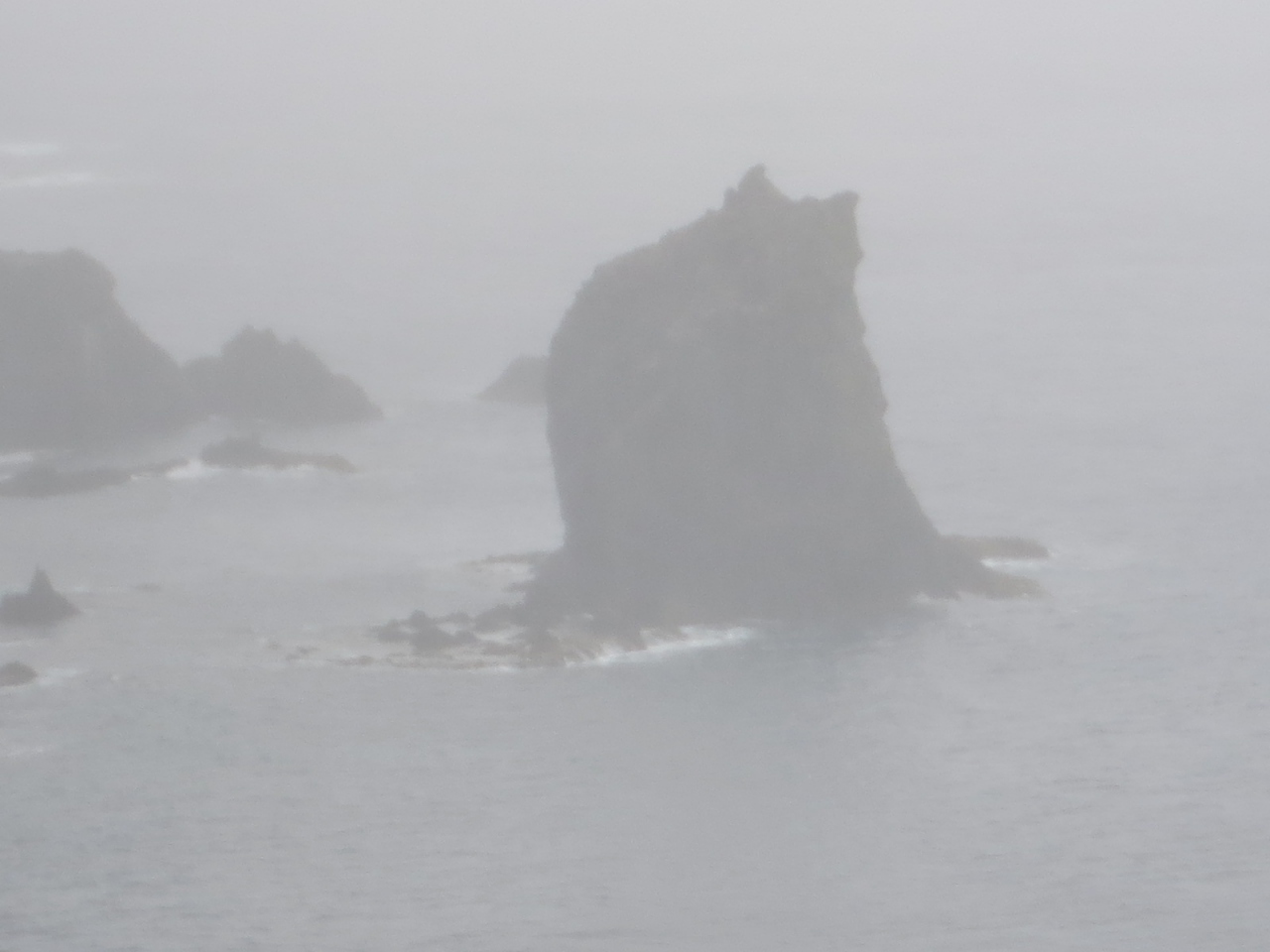 宗谷バスの観光バスで行きました。礼文島南西部の岩石地帯の名所の一つで、そう言われてみると猫に似ているかな、という気がしないでもないです。霧の中なのでぼんやりしているのが残念でしたが、それでも、歩きながら眺めると、いい気分になりました。