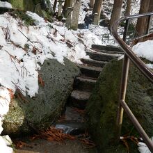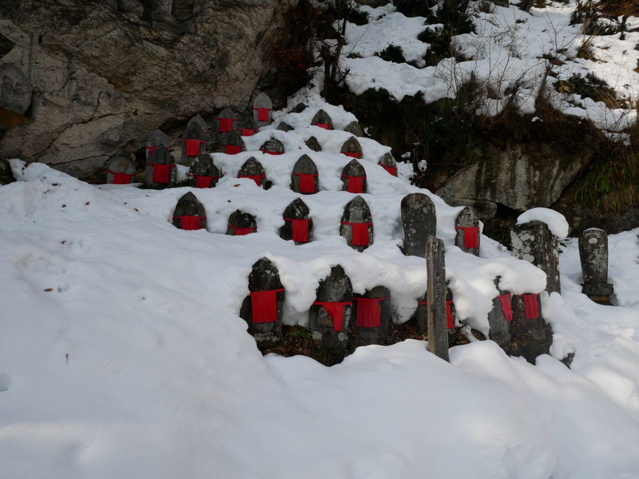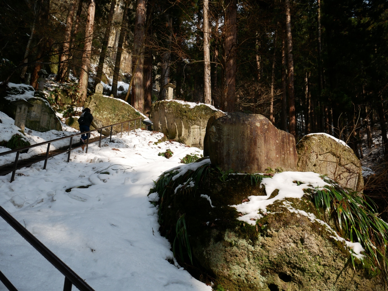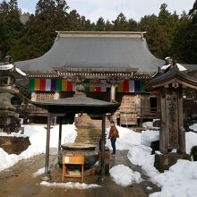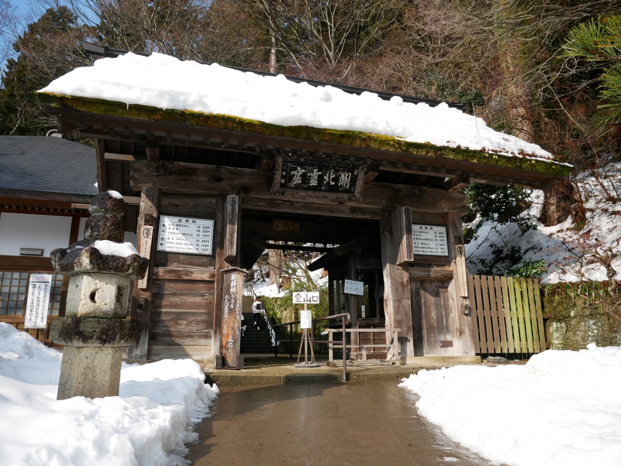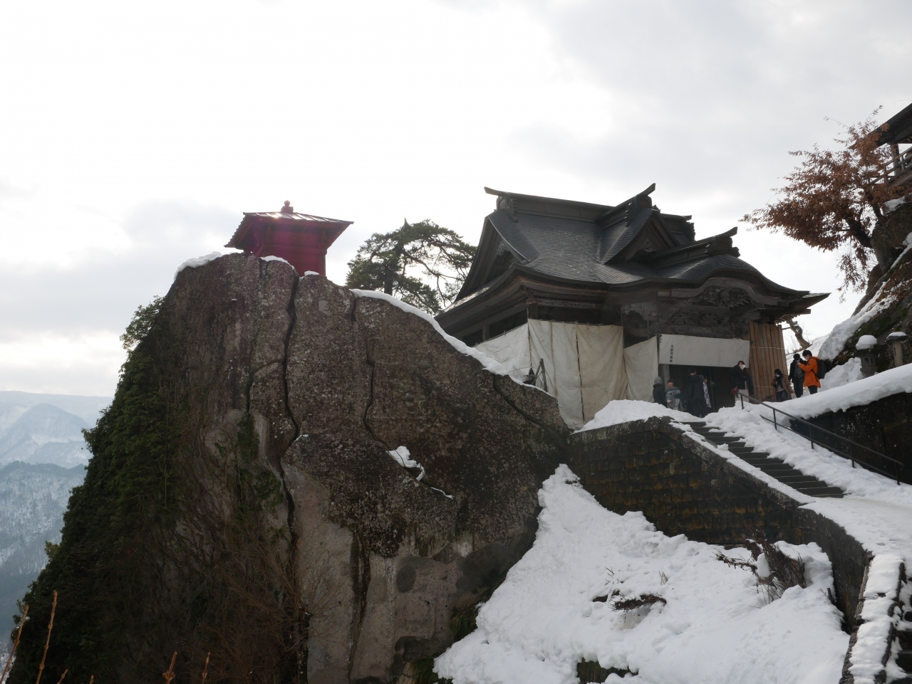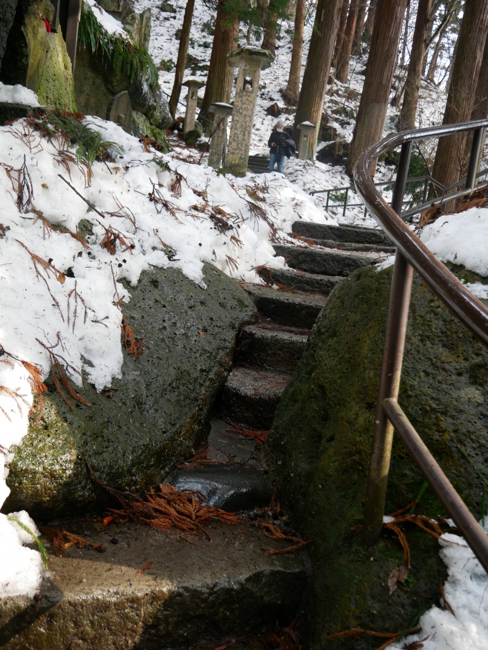 長い階段は、いちおう除雪してありましたが、やはり一部は凍っていて、冬用の靴は必須です。ですが、こんな静かな山寺を見学できるんですから、冬の山寺、行く価値ありと思いました。