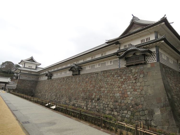 にわか城好きを自認する身としては天守のない金沢城は最初、いまひとつ魅かれるものがありませんでした。ただ各地のお城を巡るうちに、こじんまり天守や櫓が復元されているだけでは城址の魅力が伝わらないことも理解できてきました。復元建造物ながら菱櫓、五十間長屋、橋爪門が形成される「面」は圧巻です。二度めの訪問ではこのほか金沢城のさまざまな石垣を楽しみましたが、それでもまだまだ見落としているポイントがあるようです。三度目の訪問が楽しみです。