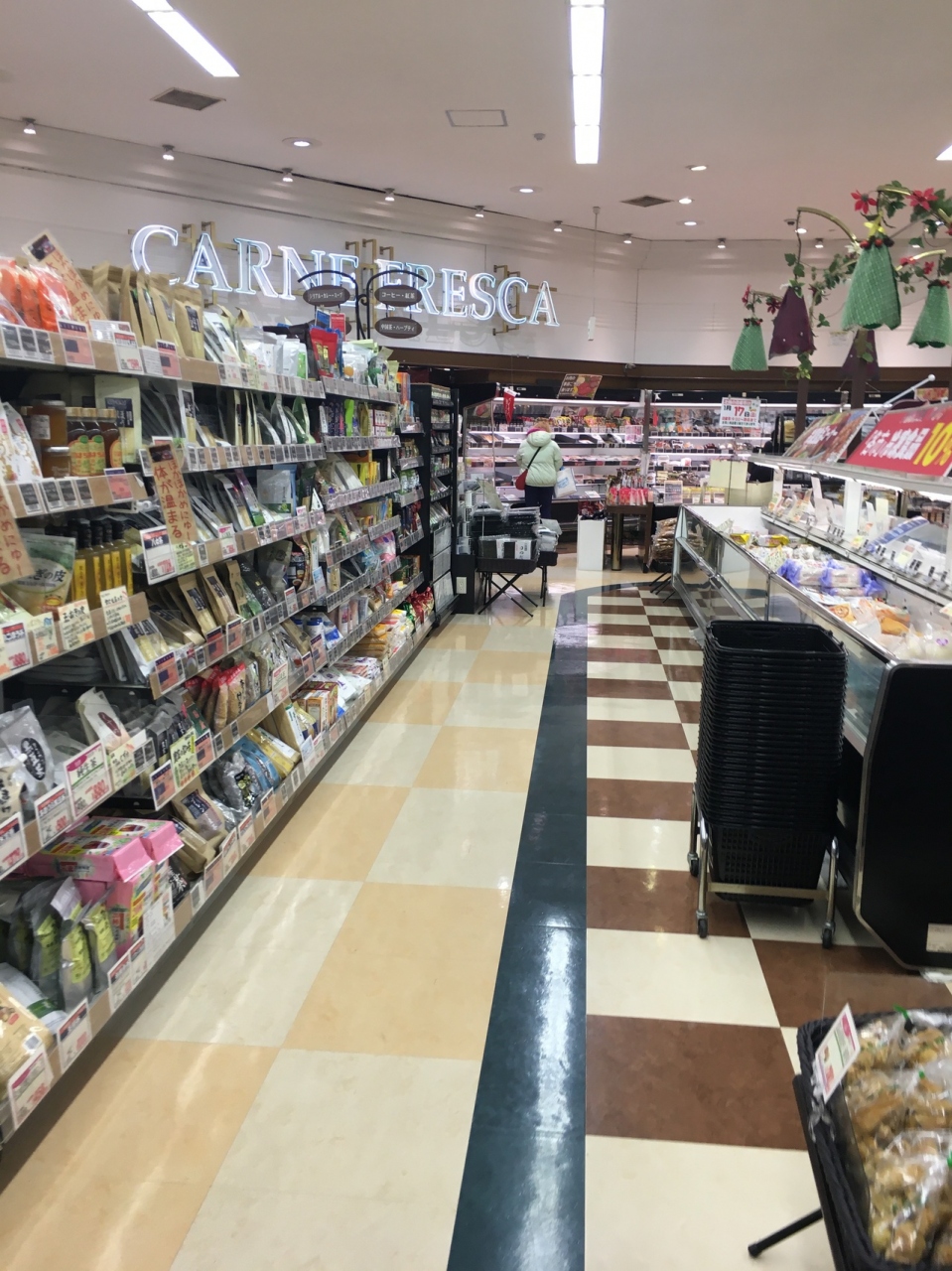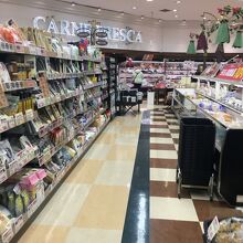 自家製の弁当が売っていて500円台後半の値段が多かったです。横にはパンコーナーもありました。普通のスーパーより少し高級感があり、チョコートコーナーのような場所もありました。店内の通路は狭めで、駐車場は広かったです。