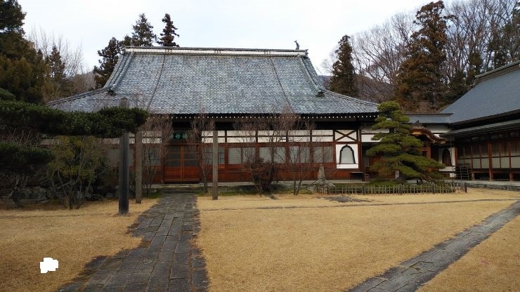 大きな山門と山門をつなぐ左右の回廊が印象的な造り。上田市の中心部からは離れた場所に位置しており、境内の雰囲気は静かだった。敷地は広く、ゆったりとした印象。