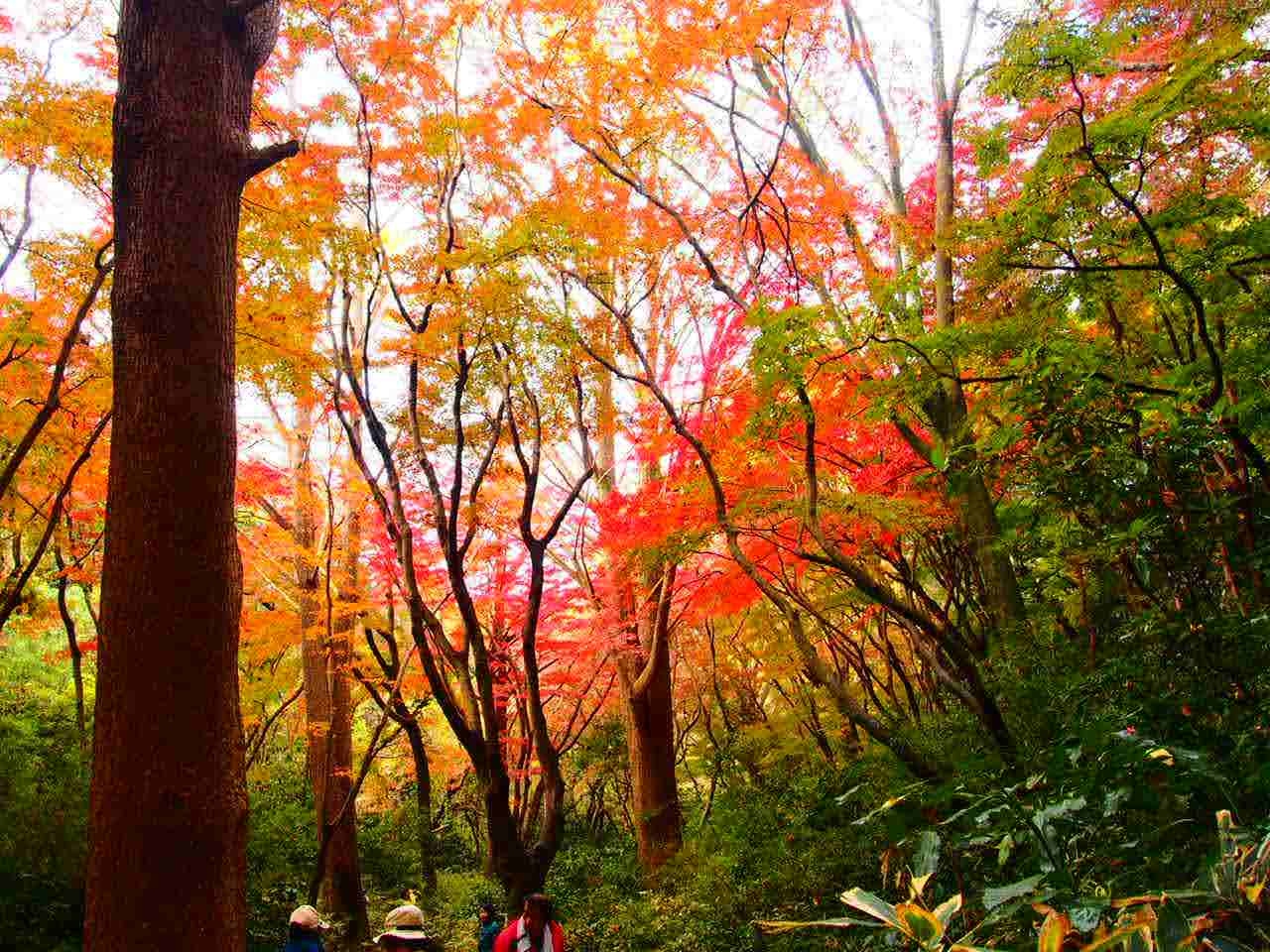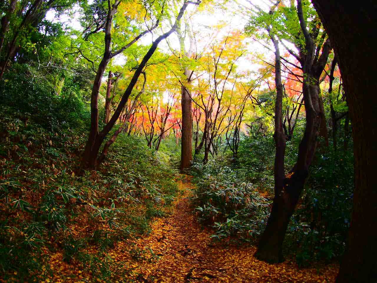 獅子舞は天園ハイキングコース途中にある紅葉の名所。一番簡単な行き方は永福寺跡を目指しそこから、山に入っていく方法だが、山間の谷なので足元には注意。