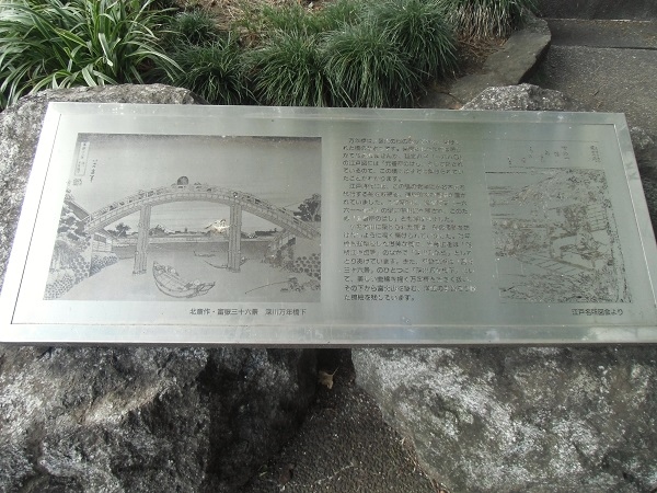 小名木川に架かる橋は、船の通行を妨げないように高く造られていたそうで、萬年橋も虹型をした優美な橋で、安藤広重や葛飾北斎の絵にも登場します。