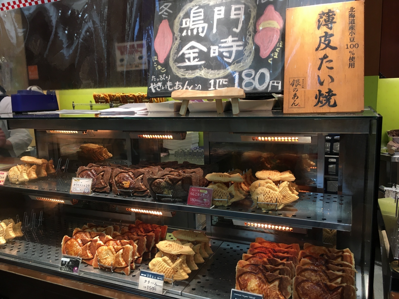 阪急西宮ガーデンズの1階、飲食店が立ち並ぶ中央辺りにあるたい焼き屋さんです。何か少し甘いものが欲しくなり、ボリューム的にも丁度良さそうで購入することにしました。並びながらショーケースを見ているとクロワッサンたい焼き等の変わったメニューもあり、季節限定の鳴門金時にしてみました。目の前にある椅子ではたい焼きを食べる人で空いておらず、フードコートへ移動して頂きました。サクっとした薄皮にお芋の餡がたっぷり入ってなかなか食べ応えあり美味しかったです。