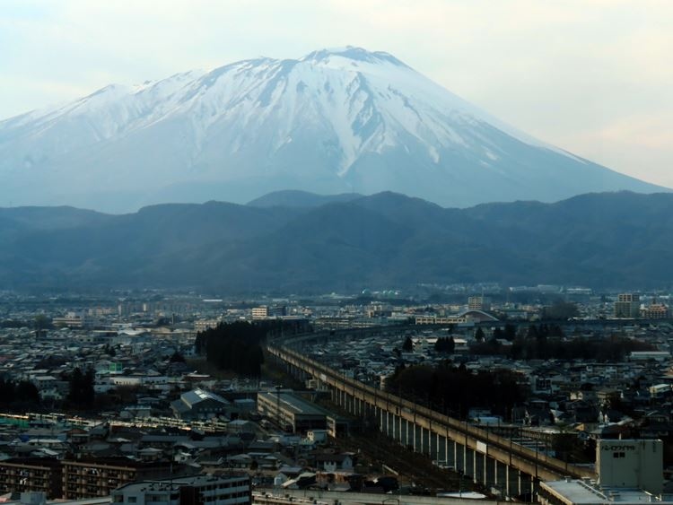 二度めの訪問。盛岡駅西口にある複合インテリジェントビル・マリオスの最上階、20階にある(無料)展望室です。このとき盛岡は経由のみでしたが、西口に高速バスターミナルがあるので、乗換えのわずかな時間で立ち寄りました。快晴とは行きませんでしたが、岩手山や早池峰山、眼下の北上川がよく見えました。