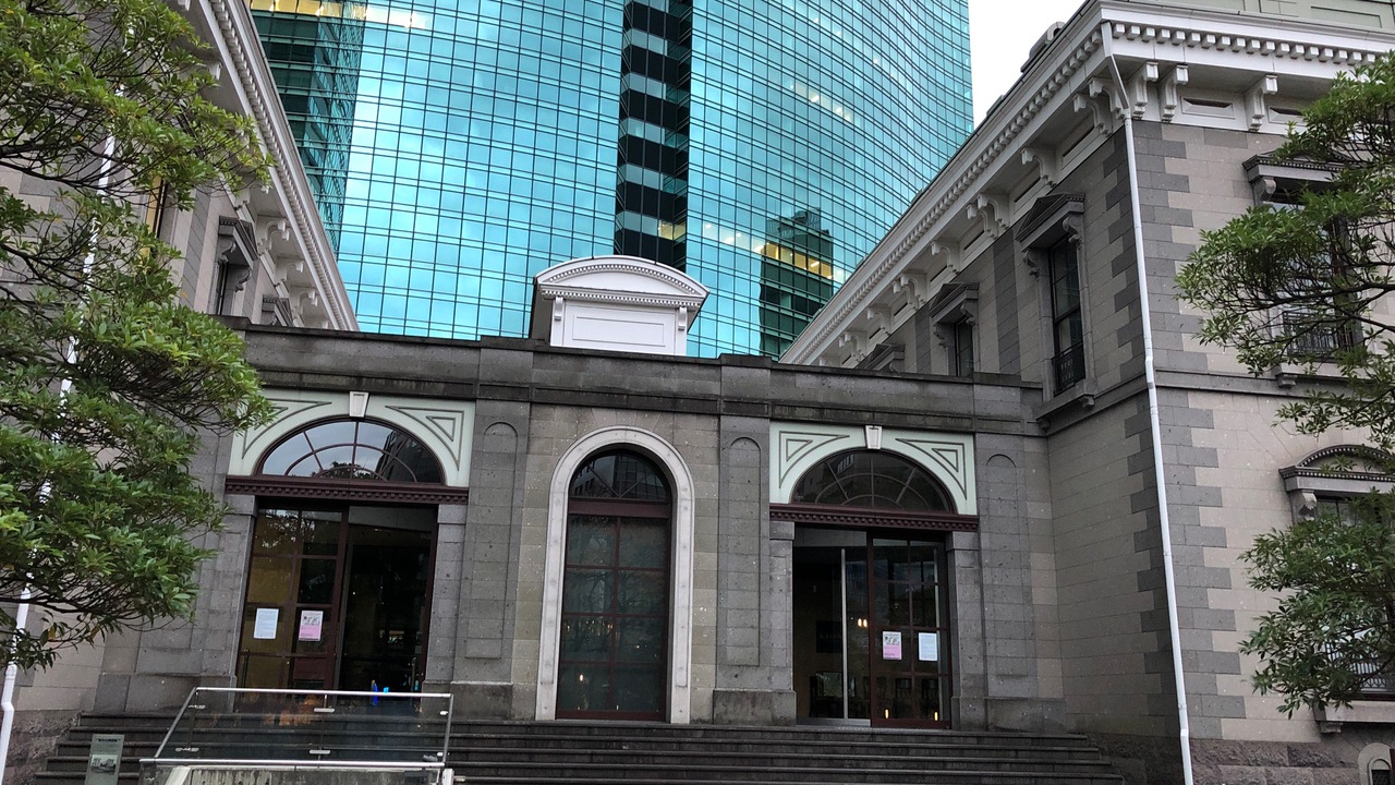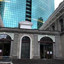 新橋駅近く、汐留シティセンターの北側にあります。ここ汐留が、日本の鉄道発祥地であることにちなみ、旧新橋駅舎が再現されています。駅舎内は、無料の鉄道展示室になっています。2020年11月は、食堂車に関する企画展示が行われていました。