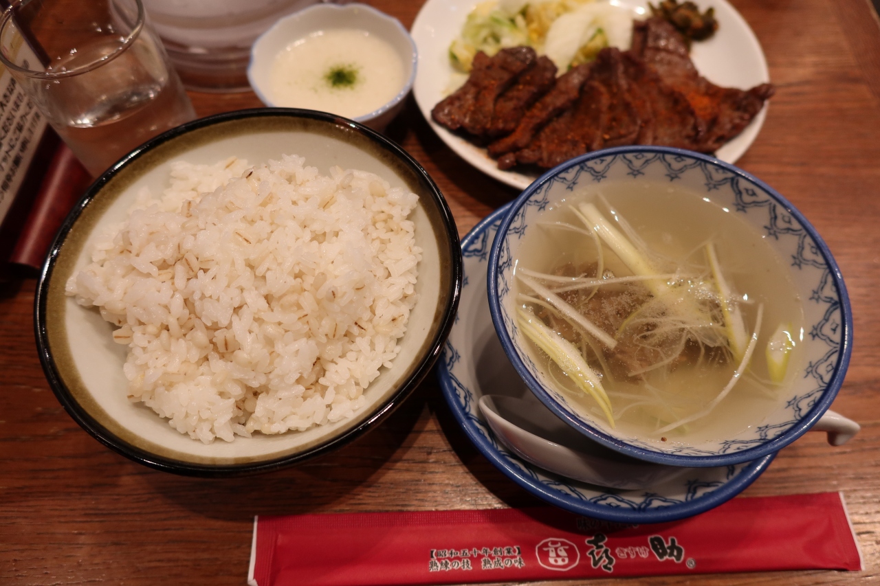 横浜ランドマークプラザの1階に仙台の牛たん専門店の味の牛たん 喜助があります。関東にある喜助はここを含め6店しかありません。頂いたのは定番の牛たん炭火焼き定食。牛たんは塩、たれ、味噌の3種から選べ、テールスープ、南蛮味噌、おしんこ、麦飯が付いてます。頼んでから出て来るまで5分も掛からず、美味しい牛たんを堪能でき満足。麦飯の大盛が無料ななのも嬉しいです。