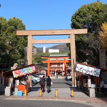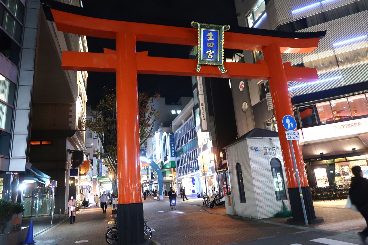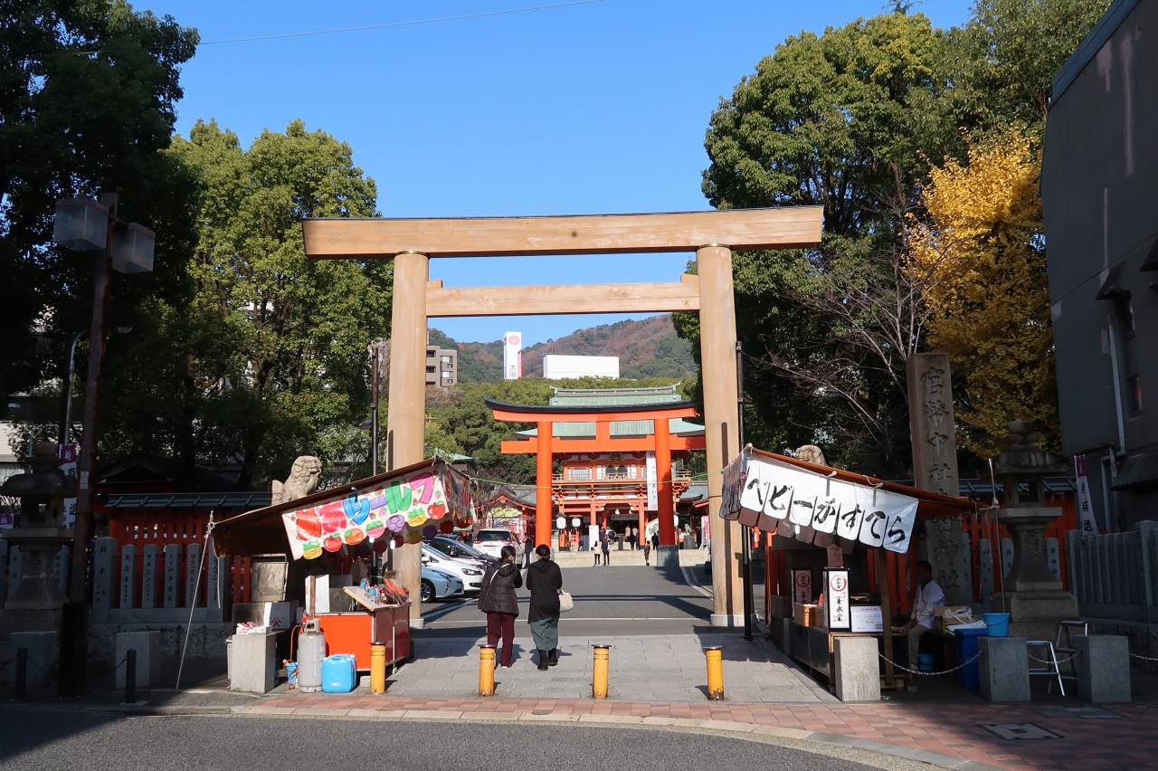 三宮駅の西側に南北に走る参道(生田ロード)があり、三宮中央通りを歩くと参道南端の入口には朱の鳥居が目印になります。参道に入れば、北に向かって400メートルくらい信号を何個か渡って歩いて到着。入口両脇にはベビーカステラとフルーツあめの露店がありました。七五三やお参りの人に混ざって参拝。ご由緒、神功皇后元年(西暦201年)三韓外征の帰途とのことで 1000年以上の歴史ある古社。