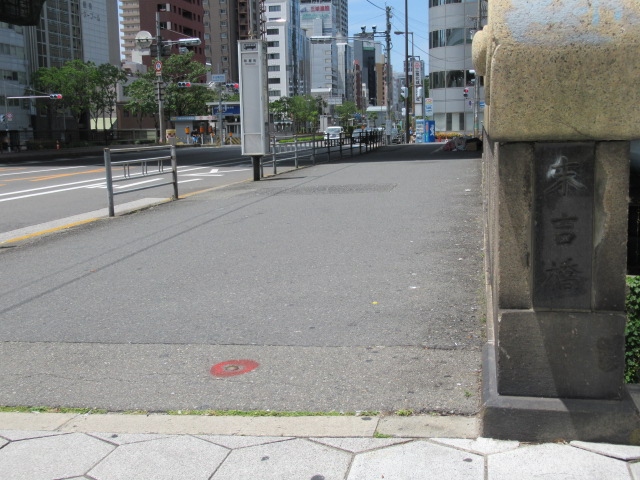 明治末期までは木橋だったようですが現在は鉄筋コンクリート造りになっていて国道308号の長堀通が走っているので交通量は多いですが幅広い歩道があるので安心です。