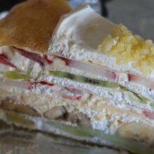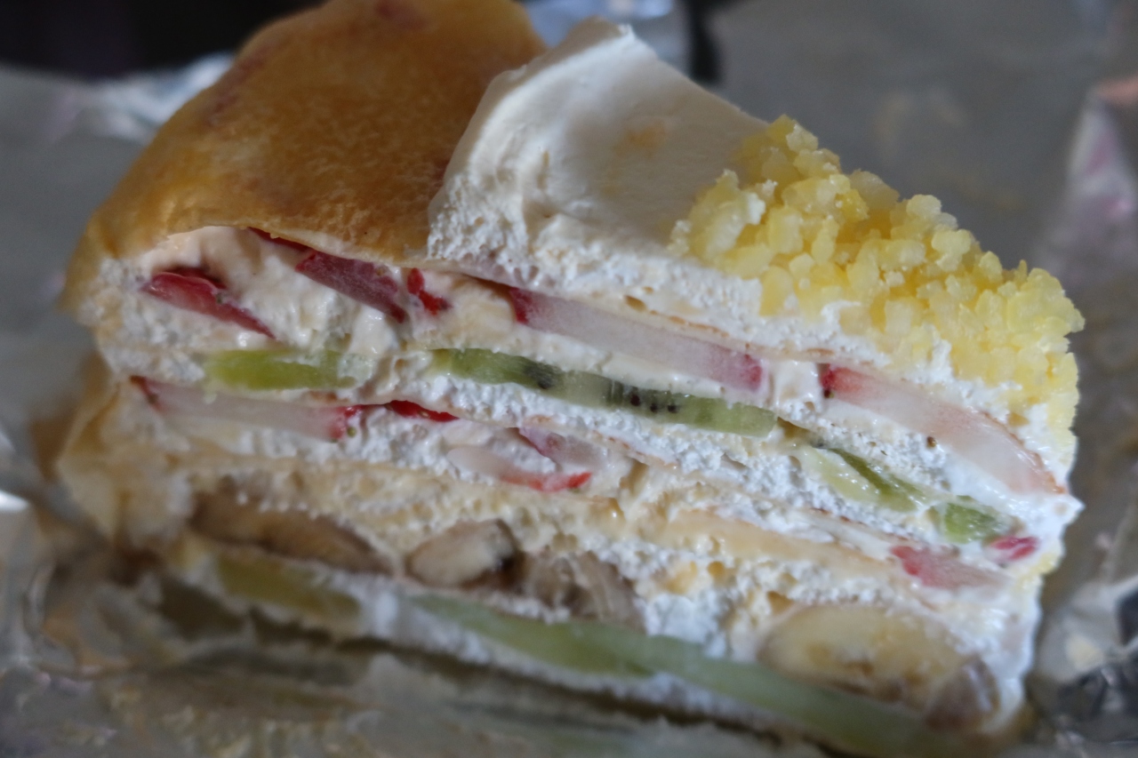 桜木町駅から陸橋でランドマークプラザ2階に入る入口左手にハーブス 横浜ランドマークプラザ店があります。普段だと入口では入店待ちの人がいるのですが、新型コロナの影響で店内はさほど混んで居ませんでした。今回、久々に看板ケーキのミルクレープをテークアウトで購入しました。イチゴ、メロン、キュウイ、バナナが重ねられたクレープはボリュームもあり、大満足。ハーブスで一番お薦めのケーキです。