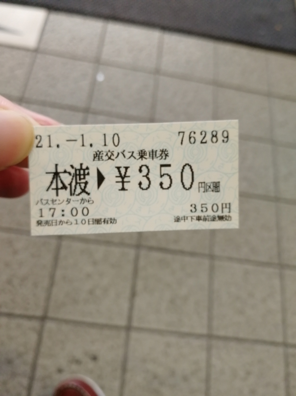 バスセンターから乗車する際は、設置されている券売機で切符を買っても、整理券を取って払っても良いようです。