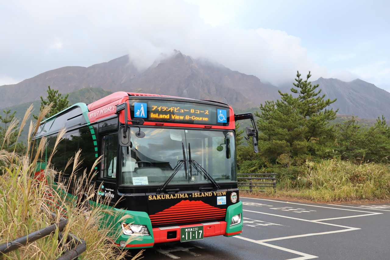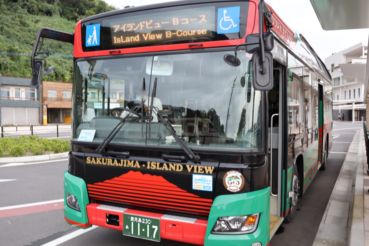 サクラジマアイランドビューバスというは、桜島内の主要な観光スポットをコンパクトに観光できる周遊バスです。桜島港フェリーターミナル発着で約一時間後に同じ場所に戻って来ます。当初はレンタサイクルかレンタバイクで一周とか考えていましたが、便利で安全な道を選びました。そもそも知らない土地で坂道も結構ありましたし、降灰で側道が滑りやすいなど危険性もあることを考慮して正解でした。