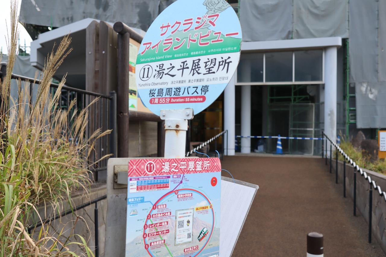 バスは一時間に一本発車しており乗降自由なので、散策して次のバスに乗ることが可能です。但し私の場合、最終バス16:30発に乗りましたので途中下車はできませんでした。乗車したままでも、桜島が間近に見える湯之平展望所では10分程度の下車休憩があるので一服したり写真撮影したりすることができます。