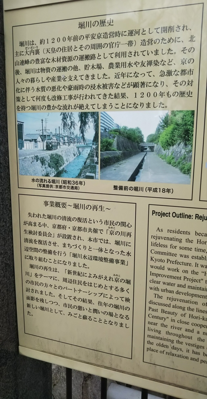 平安京時代に作られた川。昔は北山の木材資源など物資の運搬路として使われてたらしい。でも水質の悪化や豪雨時の被害で幾度も改修工事が行われて今みたいな静かな流れになったとのこと。ここは七夕の時期はイベントで人が大勢来るけど、それ以外はゆっくりとした時間が流れてるような空間かな。