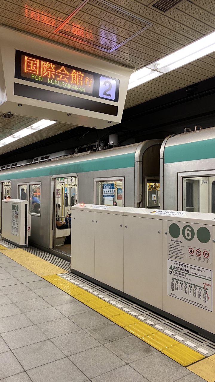 京都の地下鉄では一番混雑しているのがこの京都市営地下鉄烏丸線。京都駅に接続していますし、新幹線にも乗り継ぎしやすいので納得です。近鉄と直通運転をしているので、たまに近鉄の車両が来ることも。下校時や通勤時の混雑はかなりのものです。