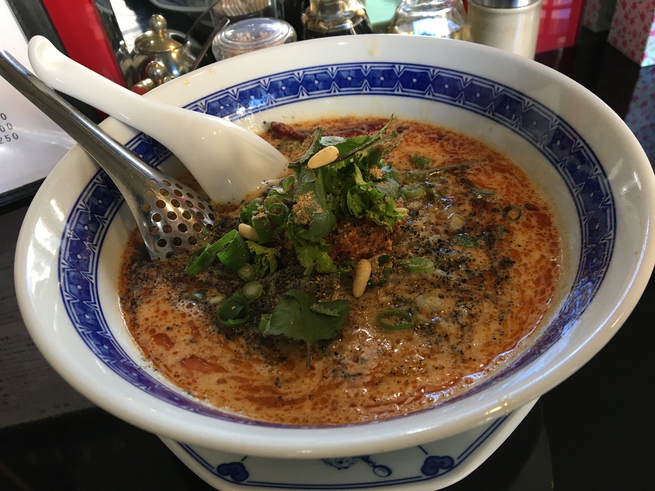 不忍通り沿いにある担々麺で有名なお店だと思います。店名などは同じですが、経営者が変わったようで、担々麺も変わったように思えました。以前はとってもクリーミーでしたが、今回食べた担々麺は辛さと酸っぱさがあり、粒の山椒もピリリとしていました。以前とは少し違いましたが、これはこれでおいしかったです。