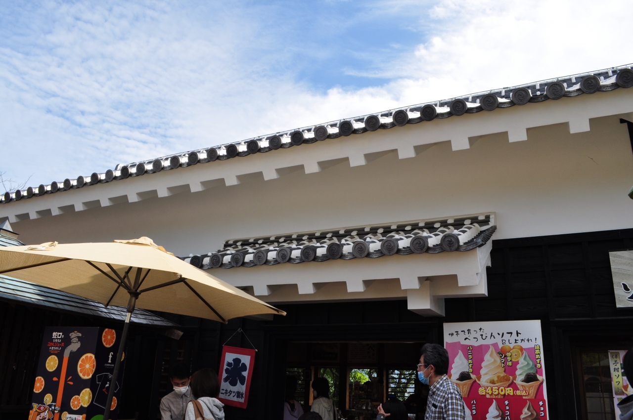 2020年10月に四国旅行をした際に立ち寄りました。松山城内の太鼓門を通り過ぎてすぐの場所にあるお茶屋さんになります。愛媛名物のミカンジュースの他、うどんなどの軽食やかき氷などの販売も行っていました。松山城は結構な距離と階段、坂道を歩くのでこういった休憩場所があるのはありがたいですね。コロナ禍の土曜日でしたが、そこそこお客さんが入っており繁盛していました。