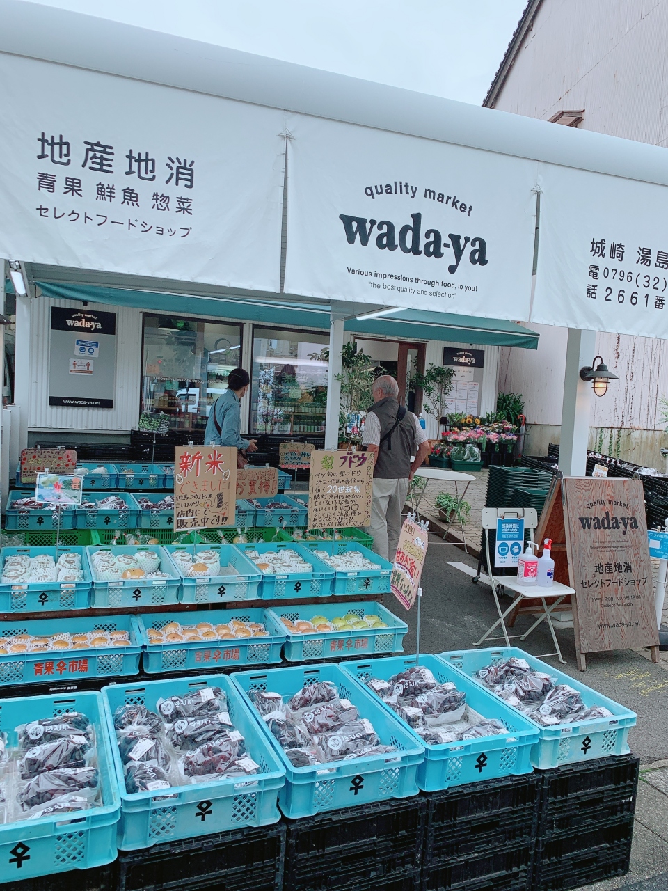 城崎温泉に行くへあたりリサーチしてみつけたデリカ兼市場です。駅前通りなので到着して直行。新鮮なお野菜が店頭に並び、店内には瓶ものの調味料やお惣菜、手作り感のあるスイーツなどが並んでいてめちゃ魅力的。ついついいろいろ買っちゃった