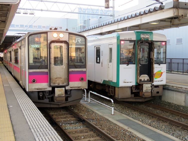 そもそもは青森駅から秋田駅を経由してから内陸に入り、山形県を縦断して福島駅に至る長距離路線。つまりかつては東京から青森に至る東北本線と並ぶ二大幹線でした。現状「秋田~大曲」は秋田新幹線区間、「福島~新庄」は山形新幹線区間なので、両区間外が奥羽本線のイメージ。青森~秋田は特急が設定されているので、大曲から横手を経由して新庄に至る区間がもっともマイナーでローカルな区間になります。新庄~秋田は一度だけ乗り通しましたが、普通列車で2時間半。さすがに縁遠いです。