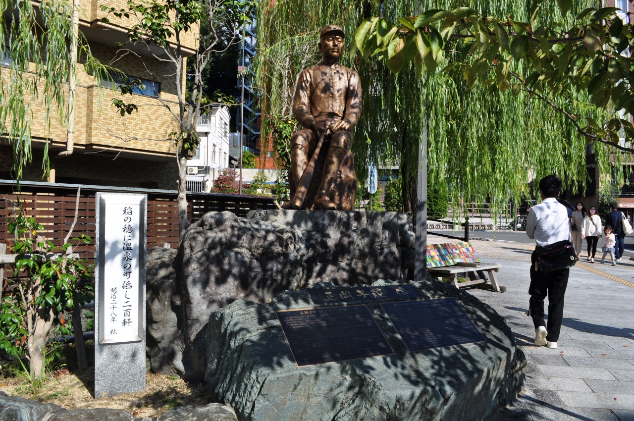 2020年10月に四国旅行をした際に立ち寄りました。伊予鉄道道後温泉駅を降りてすぐ目の前の放生園そばに野球ユニフォーム姿の正岡子規像が置かれています。正岡子規は俳人としてはもちろんですが、熱狂的な野球好きでも知られ、野球に関わる英語を多く和訳し、それらが現在の野球において定着していることから2002年に野球殿堂入りまで果たしています。道後温泉に何故正岡子規像が?とは思いましたが、しっかりと案内文も書かれており、分かり易い銅像でした。