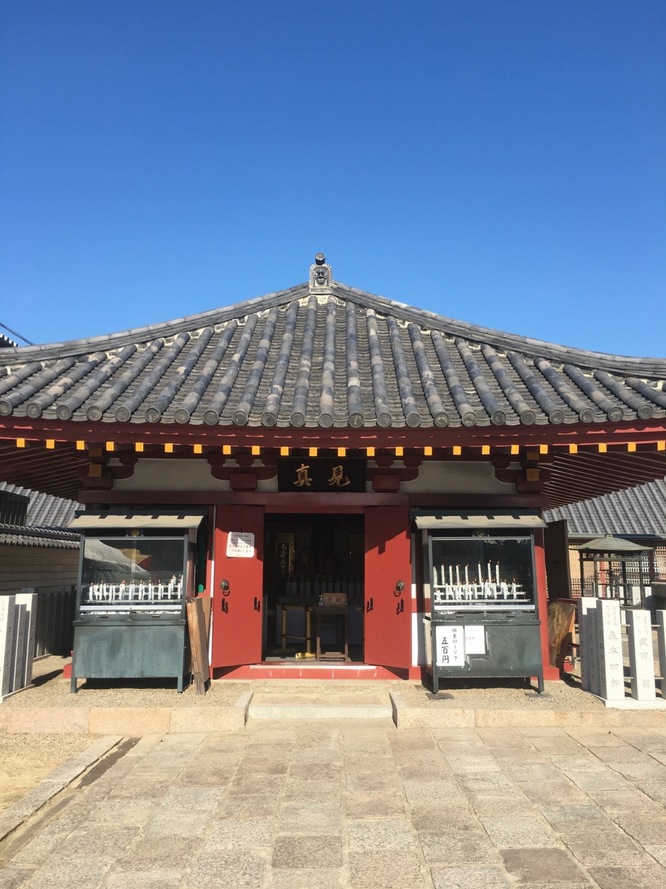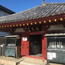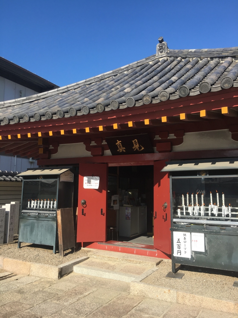 建物の左右には蝋燭建てがあり、火がたくさんついていました。外は晴れていましたが中に入ると暗めで寺の方が駐在していました。正月だったので多くの酒瓶が並んでいました。境内の地図も置いてあり、境内を周遊するのに重宝しました。