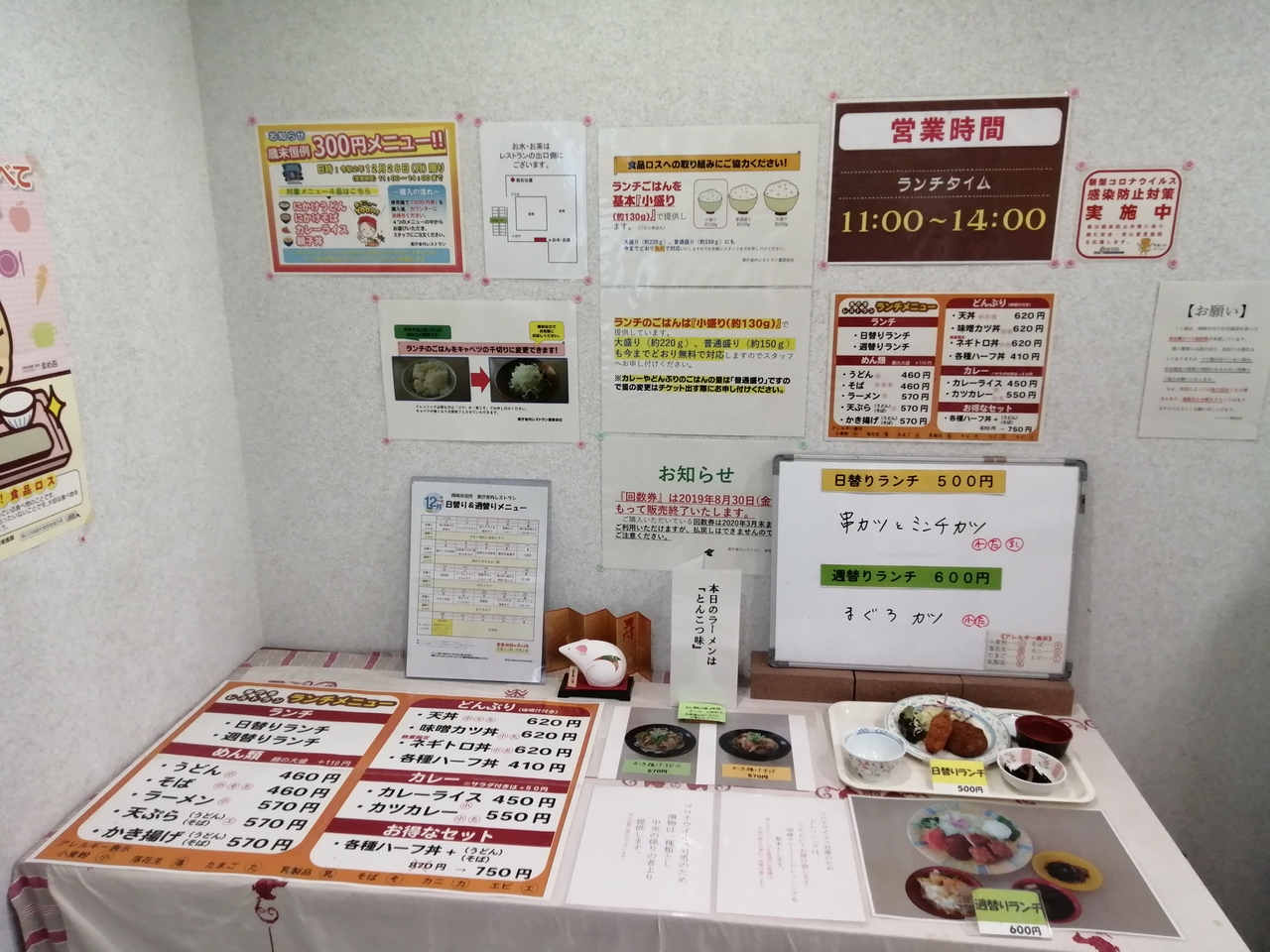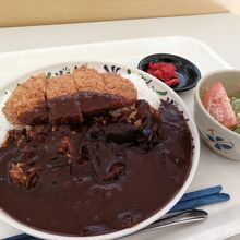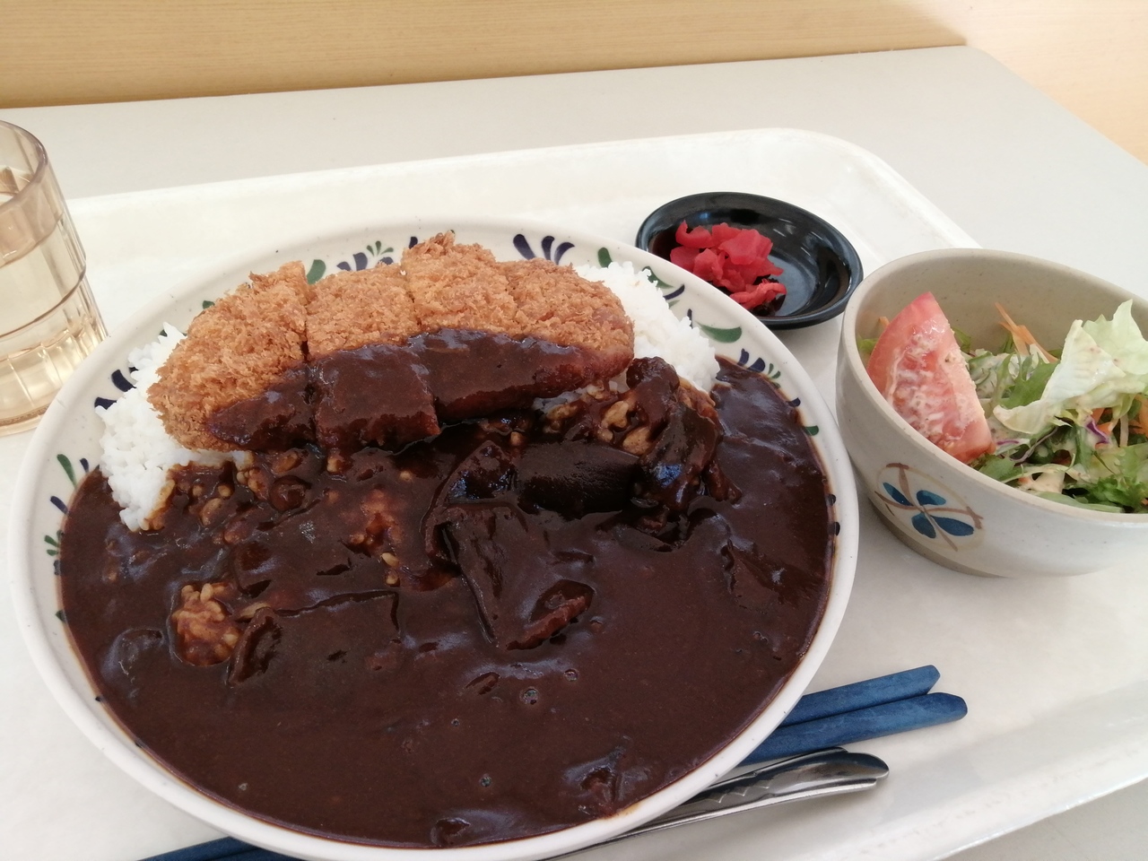 岡崎市役所に行く用事があったので、ついでに東庁舎2階にあるレストランでランチしてみました。レストランというよりは社食ですが…。入口にはメニューと日替わり定食(税込500円)の“現物サンプル”が…。何にしようか迷いましたがやはりこういう所のカレーはなんか気になる~。カレー単品は450円でしたが奮発してカツカレーミニサラダ付き(600円)にしちゃいました。ふふっ。食券を買い、カウンターで品を受け取るセルフサービスです。お茶、水は無料です。
