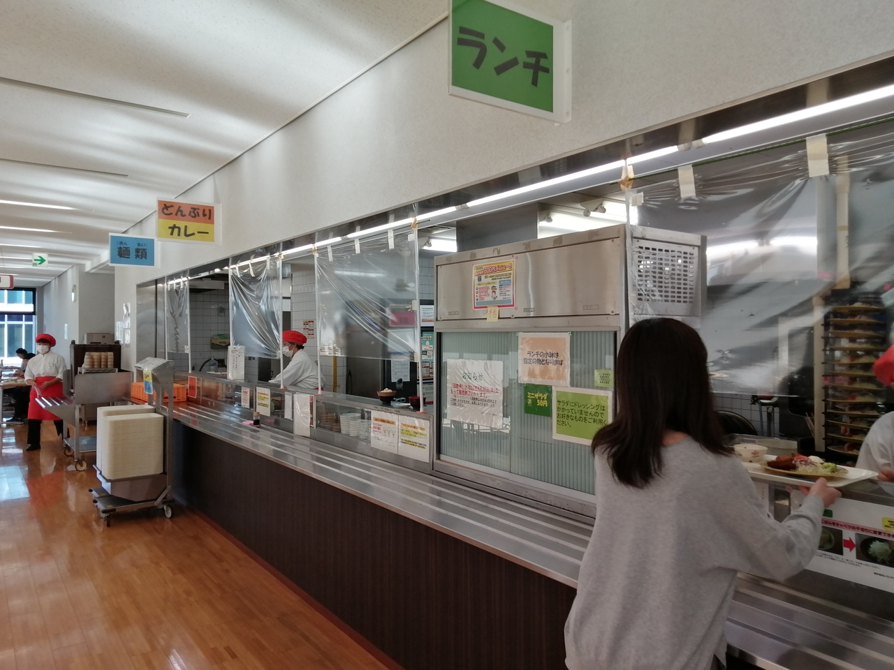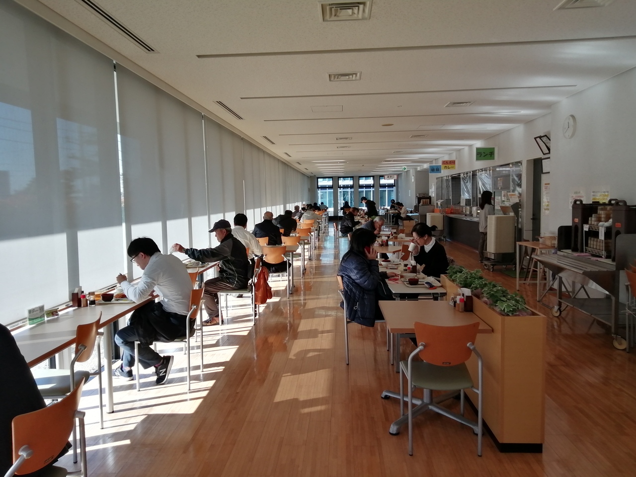 で、カレーは…黄色ではなく茶色。視覚効果でしょうか、ハヤシライスの味になっちゃいましたがおいしかったです。食べてる途中で12:00になりましたが、職員の方々がどっとやって来るということはありませんでした。むしろ近所に住んでいると思われるおじちゃん、おばちゃんと業者のような方々が目立ちました。