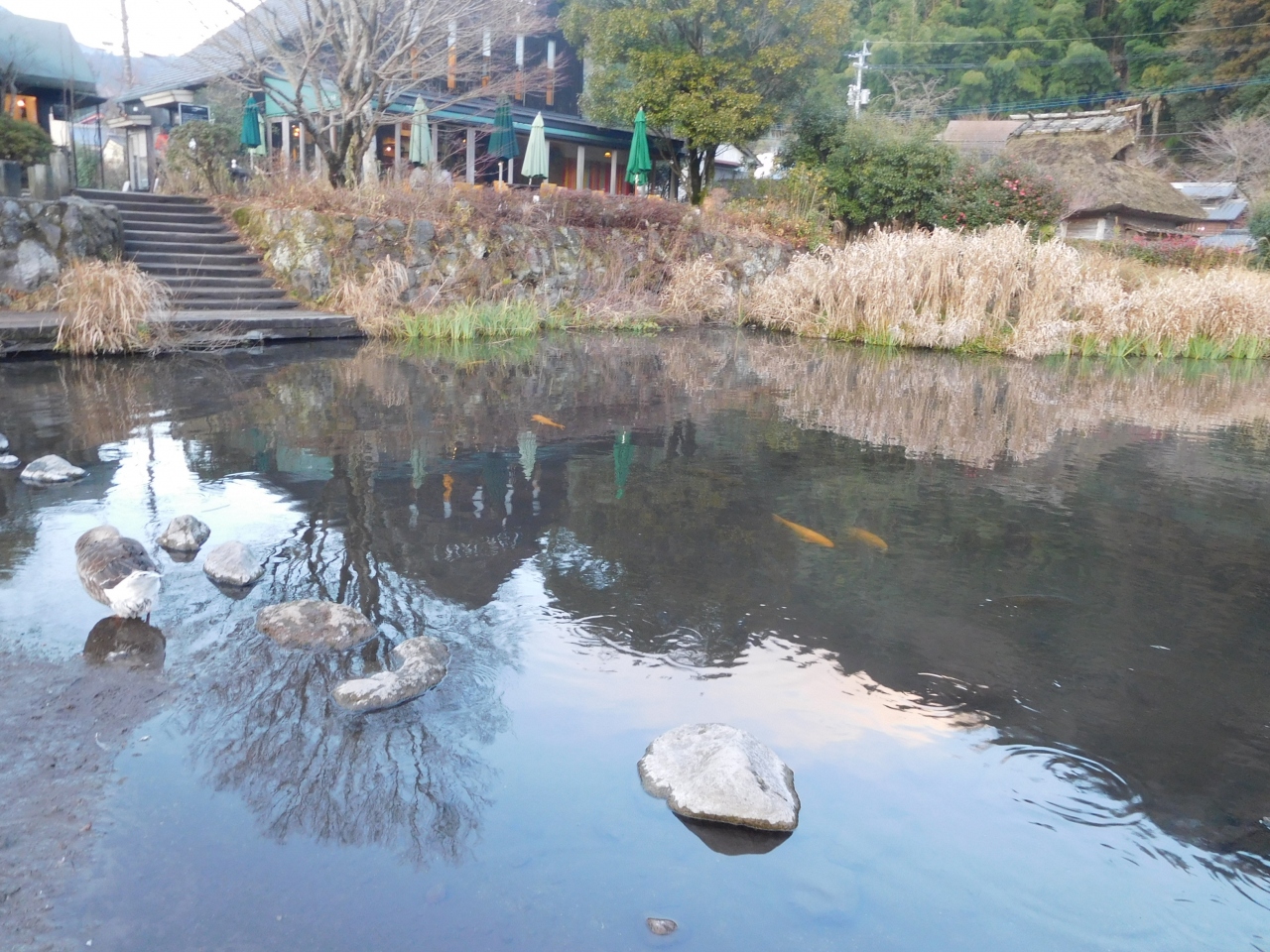 ほのかに湯気が立ち込めていました。鯉が泳いでいたのもよかった。