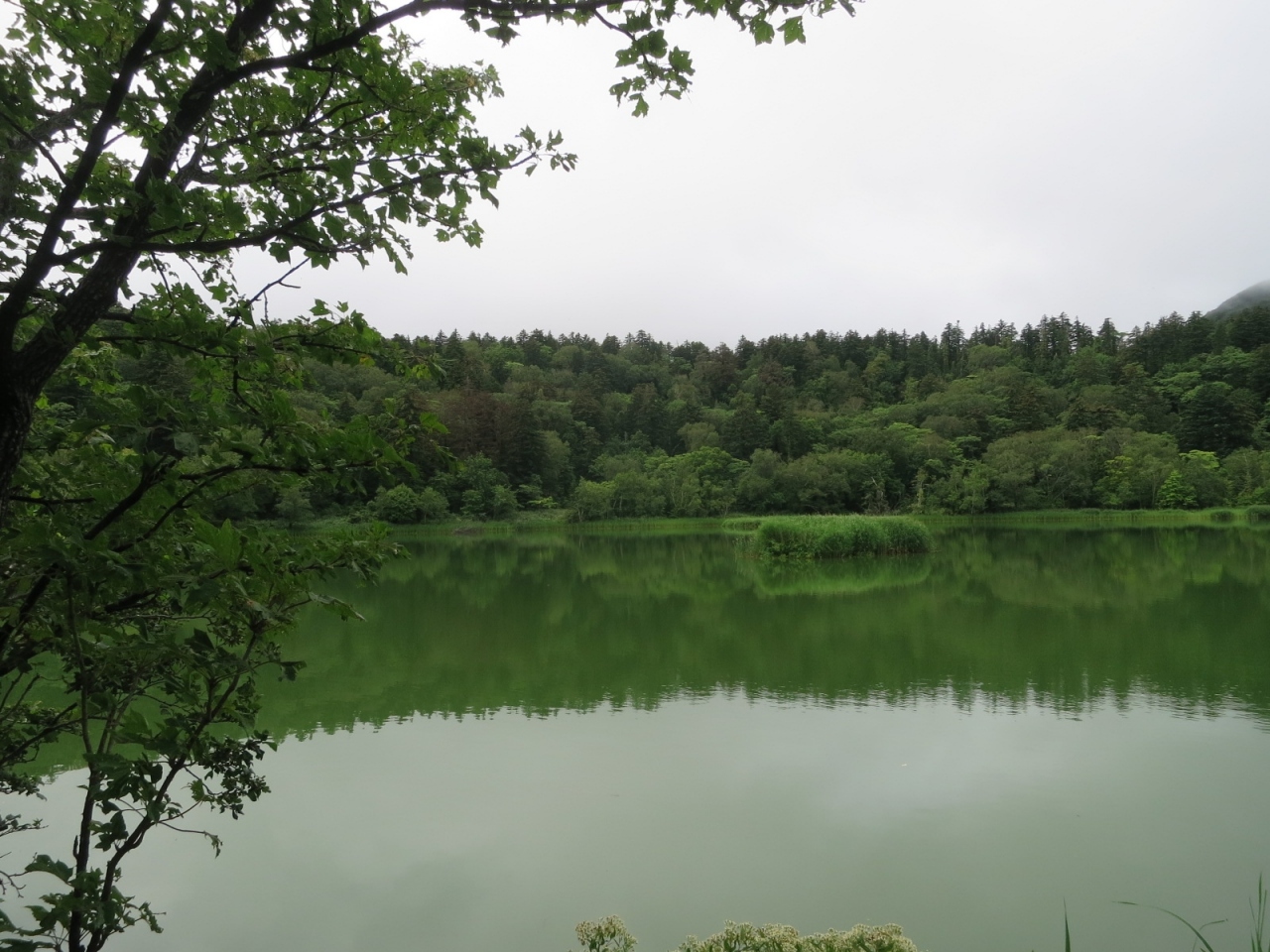 宿泊した鴛泊地区から路線バスと徒歩で行きました。バス停からは往復徒歩30分かかり、しかも坂道なので結構きついです。沼の周りに遊歩道があり、歩きながら北の美しい自然を楽しみました。雲さえなければ、水面に映る利尻富士を楽しめたんですけどねえ・・・。