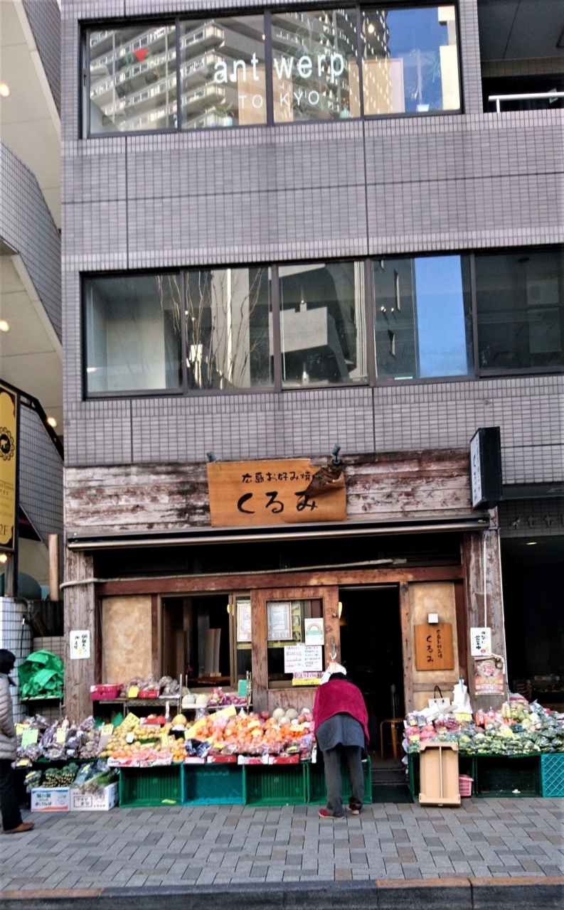 神楽坂本通りに面した広島風お好み焼きのお店。店の前にはいつも野菜や果物などを売っているのがめずらしいので、目立つ。広島風お好み焼きは東京ではめずらしいが、最近だんだん増えてきている。麺や餅などが入っているのが特徴である。