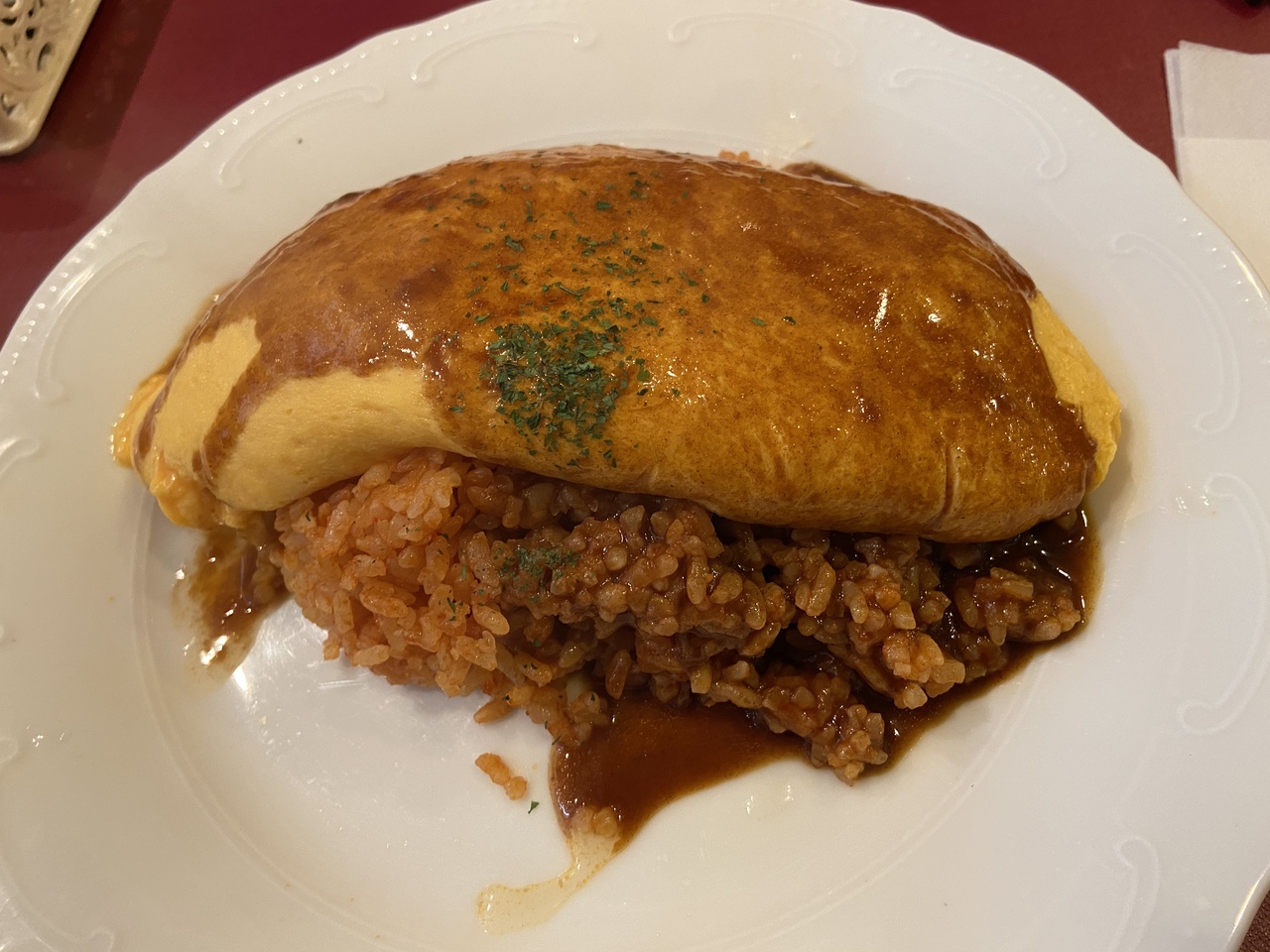 大阪メトロ南森町駅近くの商店街にある洋食のお店 モーリ亭さんで オムライスを頂きました。お店に入ってすぐ 消毒スプレーが置かれてるのを外観から確認して入店しました。愛想の良いおじさんが注文を聞いたり。お料理を運んで下さいます。お料理を作ってる方も感じの良い方で、気持ちよくお食事できました。オムライスも美味しかったです。