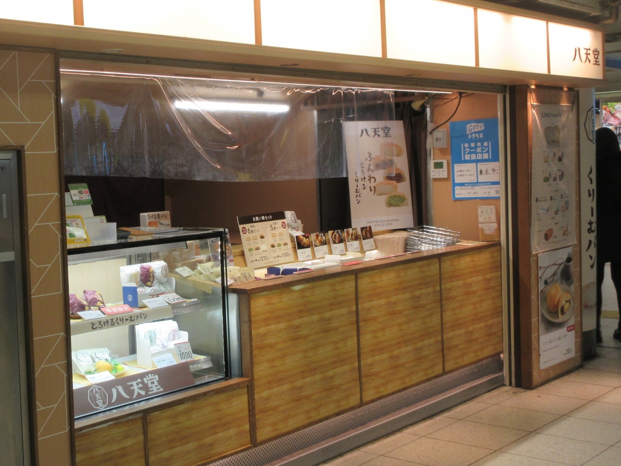 JR池袋駅中央通路・中央1改札近くに出店しているクリームパンの店です。いろいろな場所で見かける店で、ふわふわのパンの中にクリームがたっぷり入っています。昭和8年に広島で創業したそうで、クリームはカスタード、生クリーム、チョコレート、抹茶、小倉があり、季節によって限定商品がある場合もあります。利用したときはあんバターが入ったクリームパンを販売していました。パンというよりもお菓子という感じで、いくつでも食べられつい食べ過ぎてしまいます。