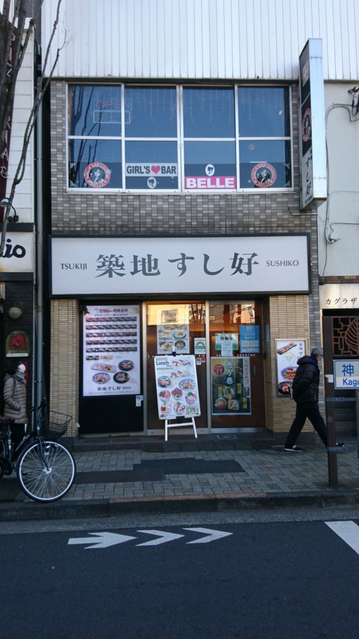 神楽坂坂上交差点近くの神楽坂本通りに面したチェーンの寿司店。昔夜かなり遅くまで営業していたので良く利用したが、最近はランチ専門。神楽坂には飲食店がごまんとあるが、意外だが寿司屋は少ない。その中でも真ん中クラスの店。