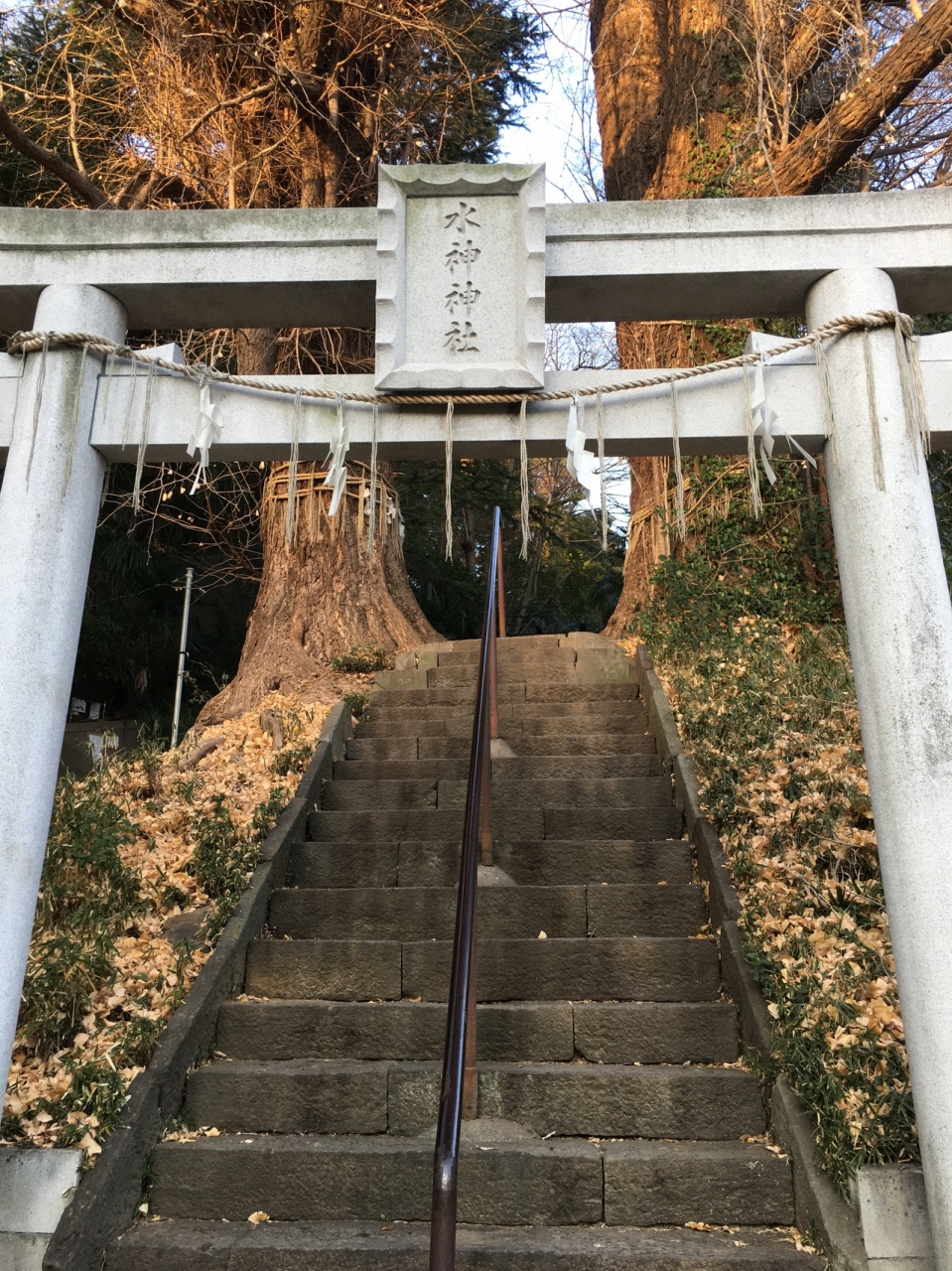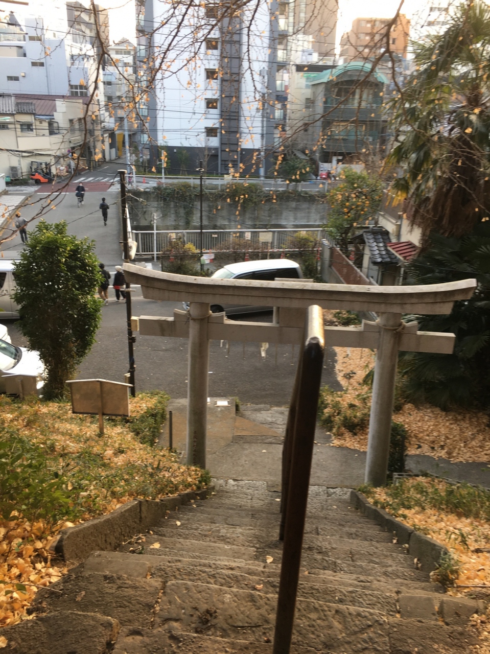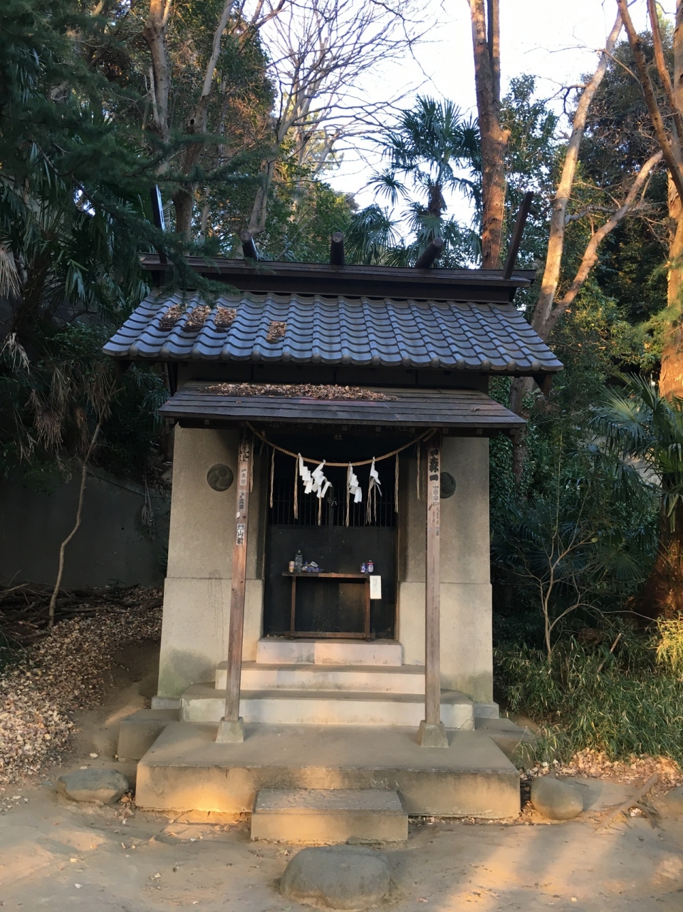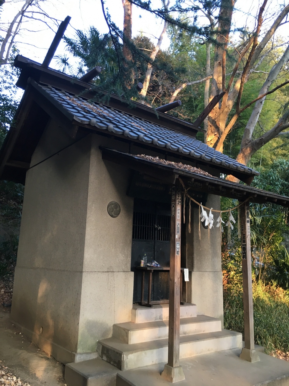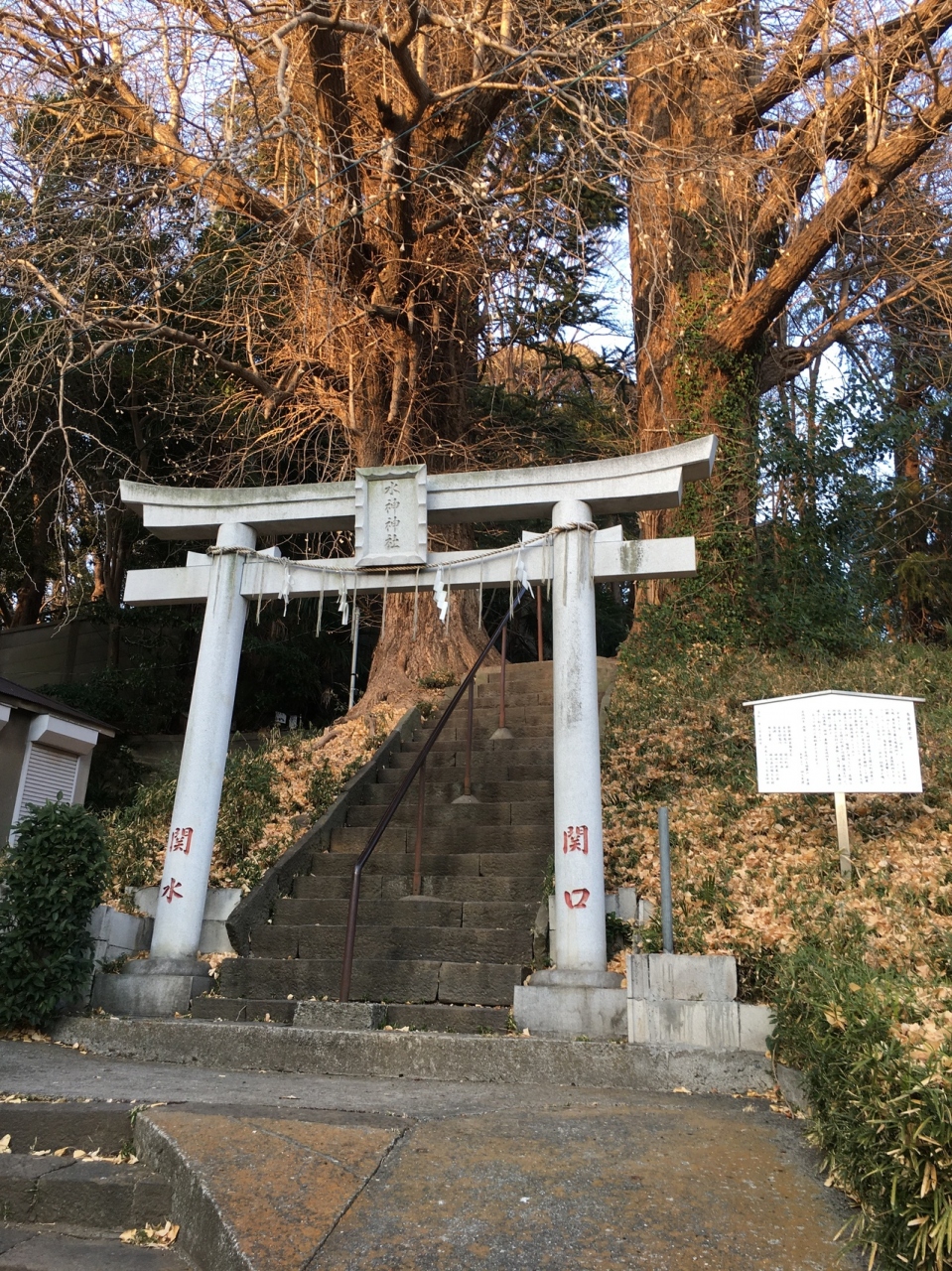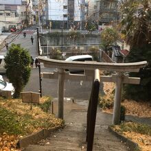 江戸川公園遊歩道沿いにあり鳥居の後ろの急な階段を上がると左右に高い木があり、超えると境内です。境内と言っても殺風景で、少し大きめの祠があるのみでした。横には胸突坂があり急勾配でした。坂からも出入りが出来ます。
