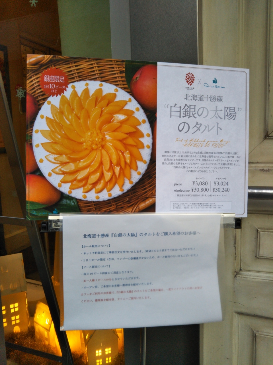 「北海道十勝産 白銀太陽のタルト」が銀座店限定商品(10ピース)で販売されていました。