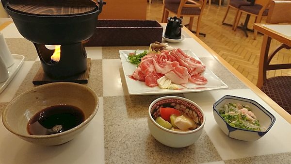 ホテルクレメント宇和島に宿泊した際、1階にこのレストランがあったので利用しました。入店時は、ほかにお客さんがいなかったので、貸し切り状態でした。そのため、店員さんのサービスの提供が早かったですが、逆に気を遣わせ過ぎていないか気になってしまう贅沢な悩みが生じました。宇和島牛のしゃぶしゃぶを注文しました。最初にしゃぶしゃぶと小鉢が2つ出され、そのあと次々に料理が届き、最後に鯛めしで締めました。どれもおいしくいただくことができたので、宿泊した際にこちらのレスランを利用することをお勧めします。