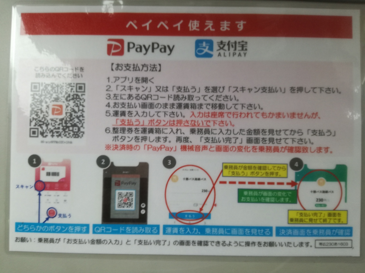 池北線の代替バスとして陸別から池田駅までと、帯広駅から空港まで利用しました。2路線とも支払いに全国共通の交通ICは使えませんが、ペイペイが使えるので小銭を用意する必要がなく便利でした。