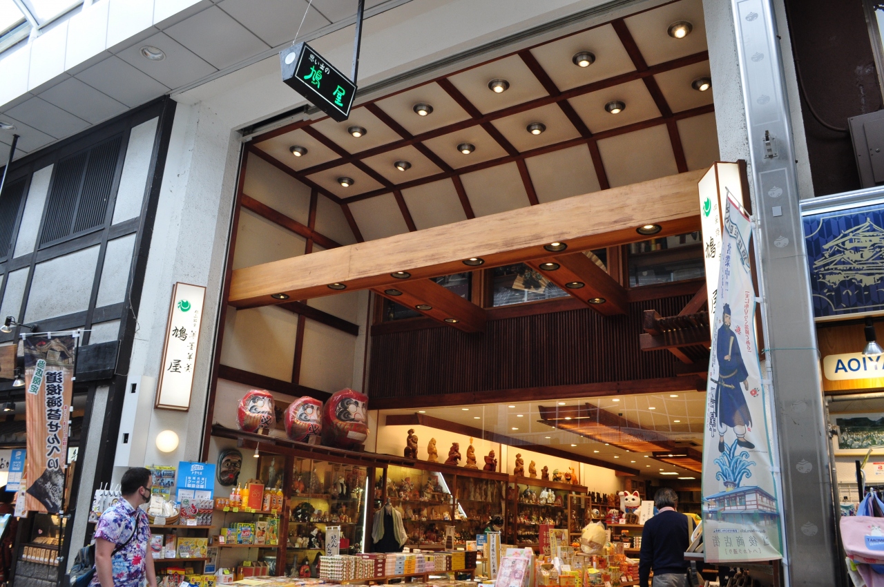 2020年10月に四国旅行をした際に立ち寄りました。伊予鉄道道後温泉駅を降りてすぐの「道後商店街」の中にあるお土産物屋さんです。「鳩屋」さんは他のお土産物屋さんとはちょっと違っており、木彫りの民芸品人形など、雑貨の取り扱いが豊富でした。また愛媛県以外のお土産も一部取り扱っているのでありがたいお店です。この商店街にあるお土産物屋さんのなかではちょっと珍しいものを置いているので、是非ともおさえておきたいお土産物屋さんだと思います。